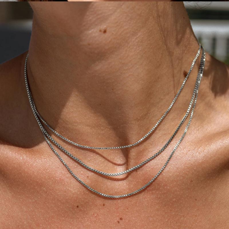 Adjustable Stainless Steel Box Chain Necklace Women Hypoallergenic Waterproof