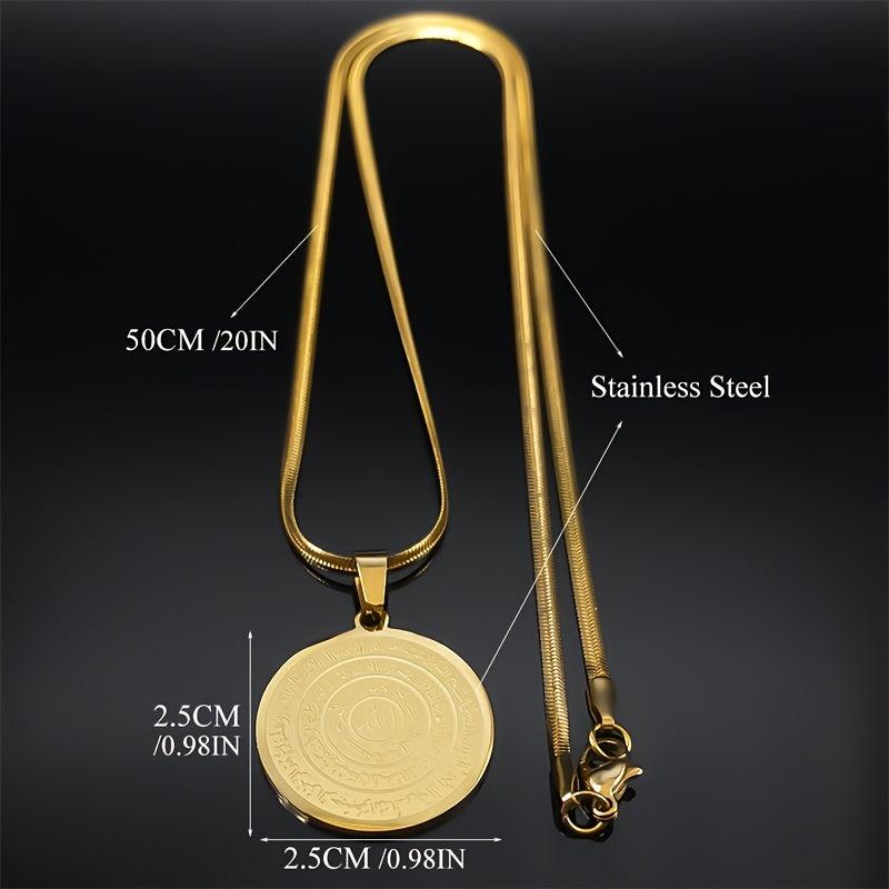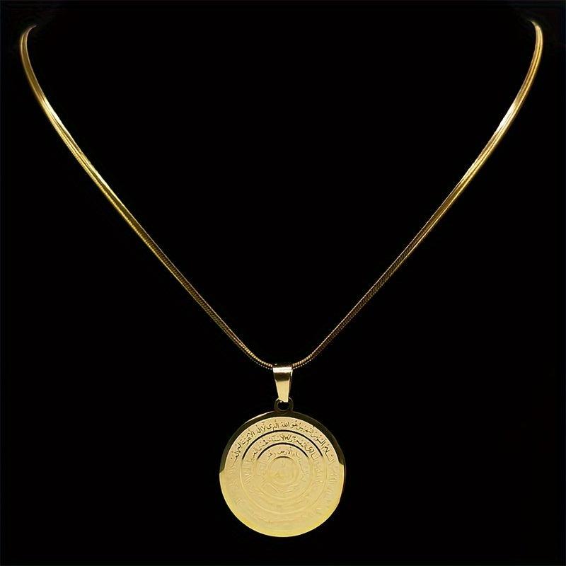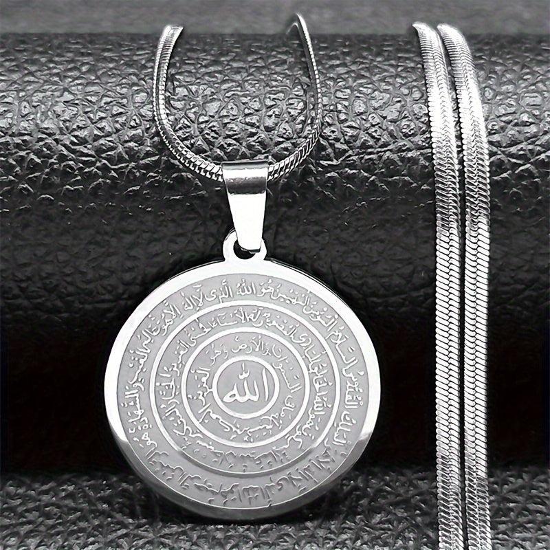 Beautiful stainless steel necklace featuring Allah Quran Arabic letter pendant. Perfect gift for Eid or Ramadan.