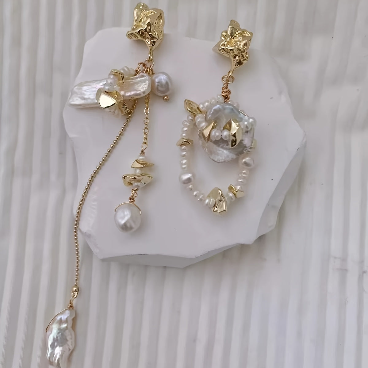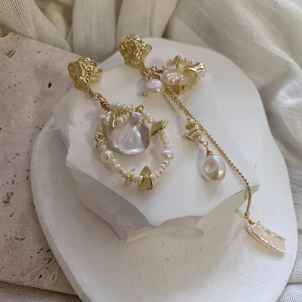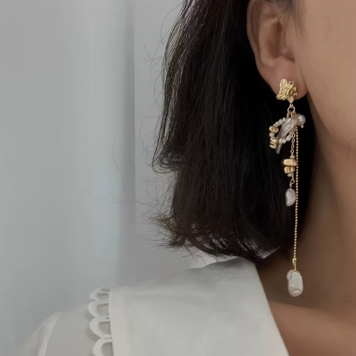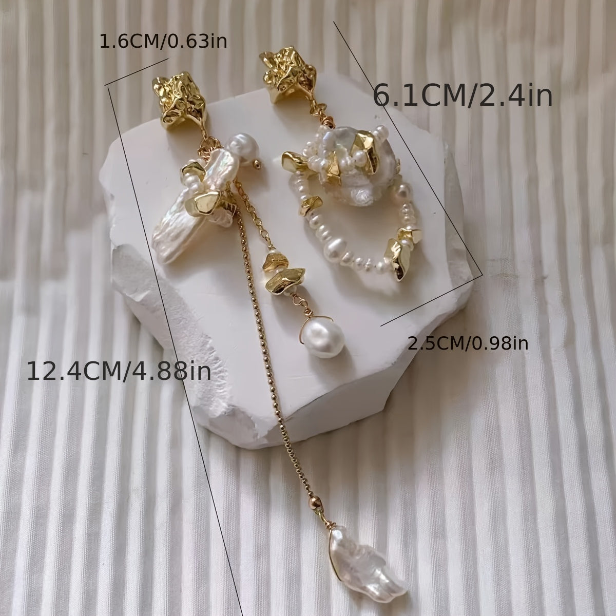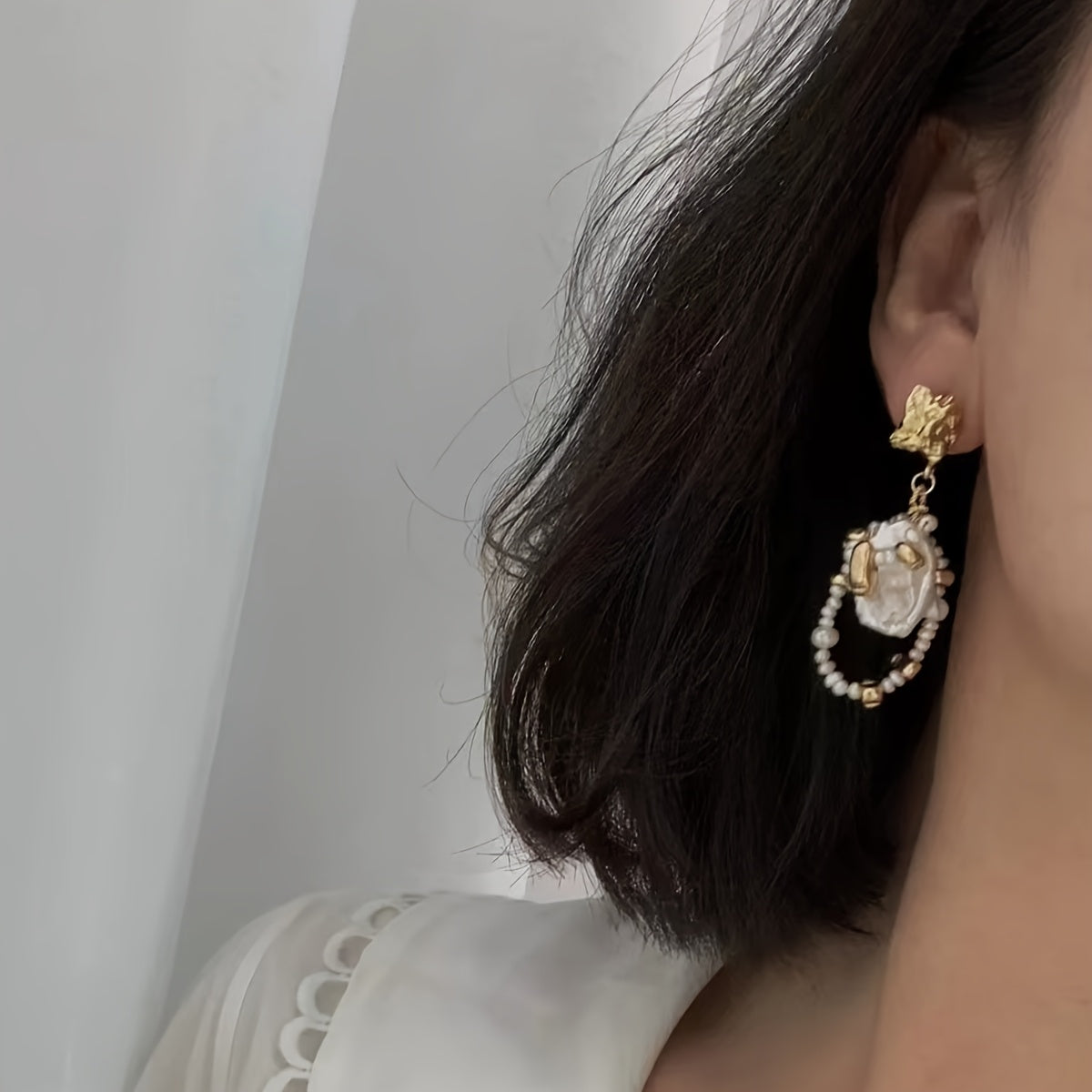 Add a touch of vintage glamour to your outfit with these elegant baroque pearl earrings. Perfect for all seasons and occasions.
