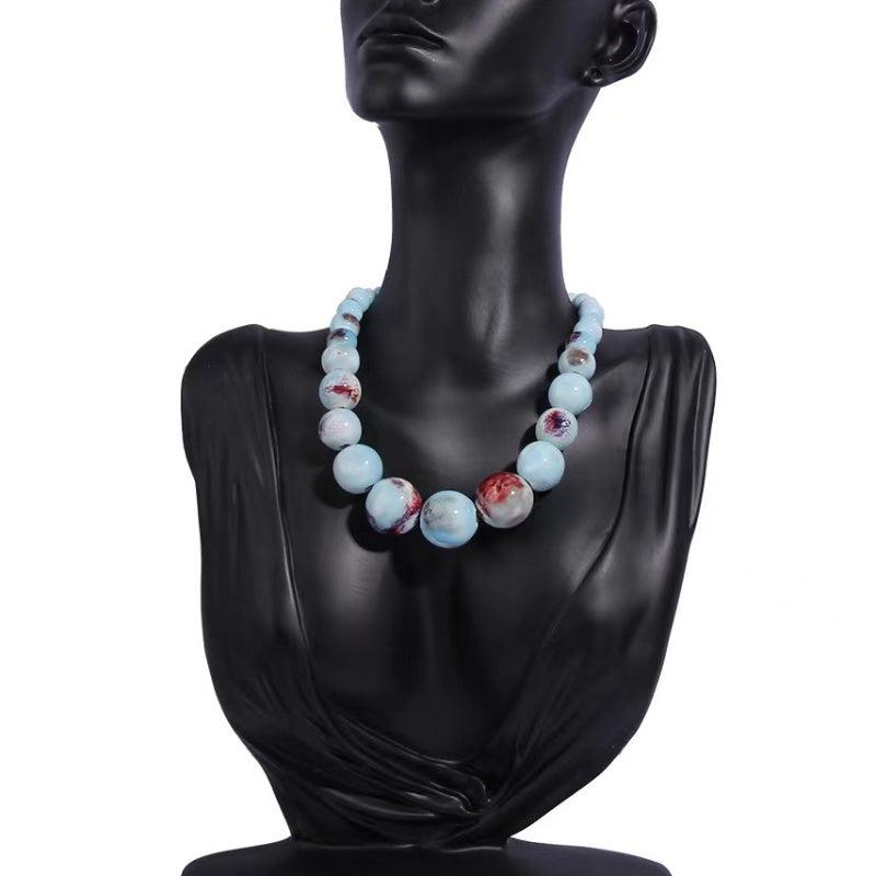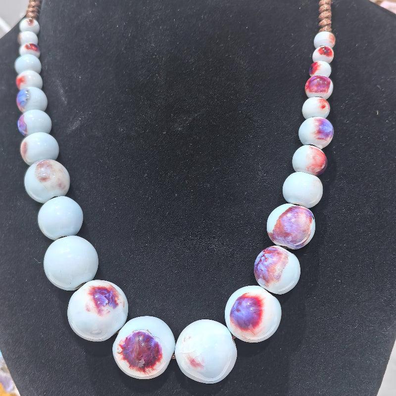 • Handcrafted ceramic bead necklace with ethnic bohemian style