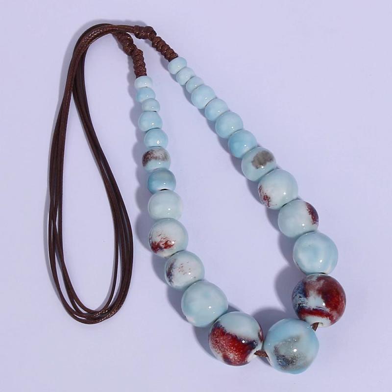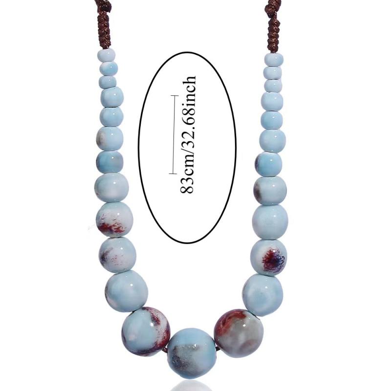 Bohemian Ceramic Bead Necklace Women Ethnic Style Pendant Versatile Vacation