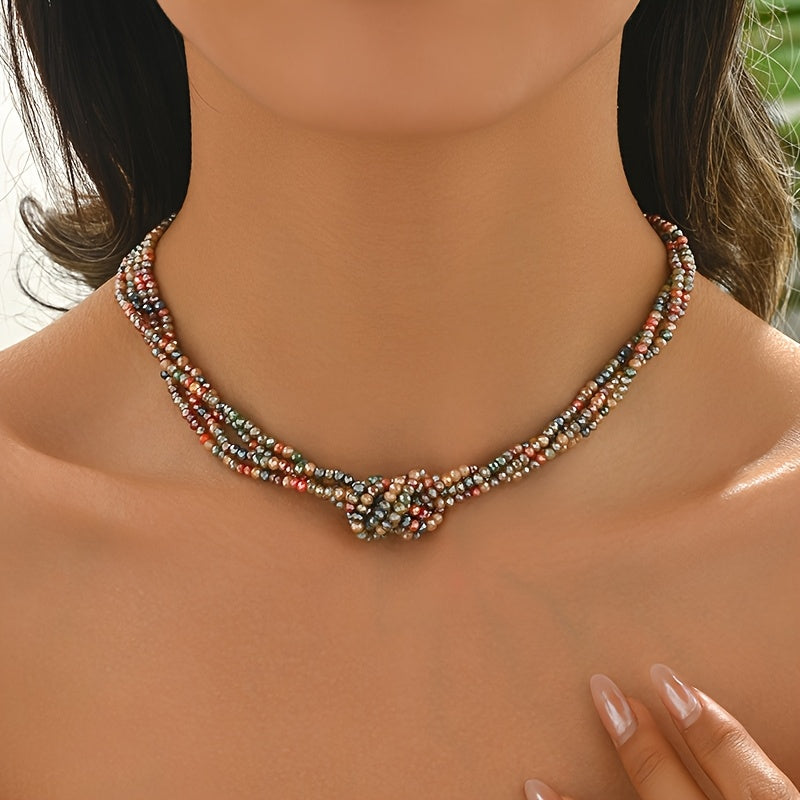 Elevate your style with this bohemian layer artificial crystal bead necklace designed for women.