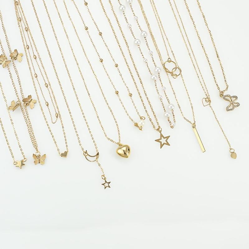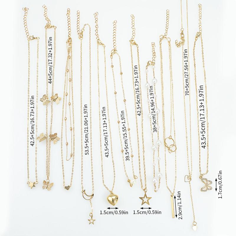 Bohemian Layered Necklace Set Butterfly Star Moon Pendants Rhinestone Accen