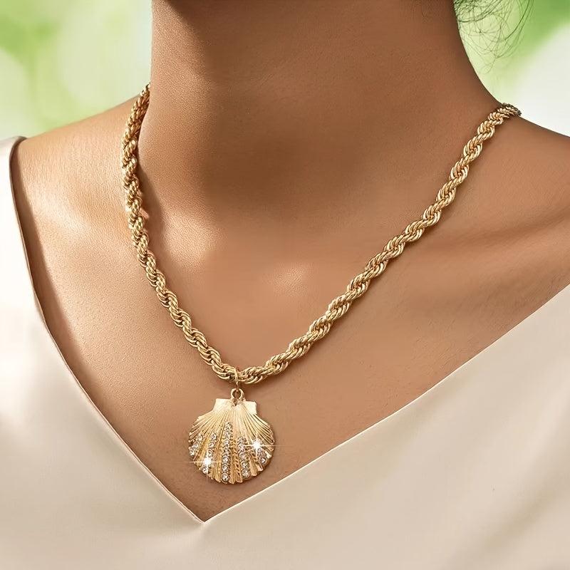 This stunning pendant necklace features a seashell design with sparkling accents, making it perfect for everyday wear or vacation outings. It's a versatile piece that adds a touch of elegance to any outfit.