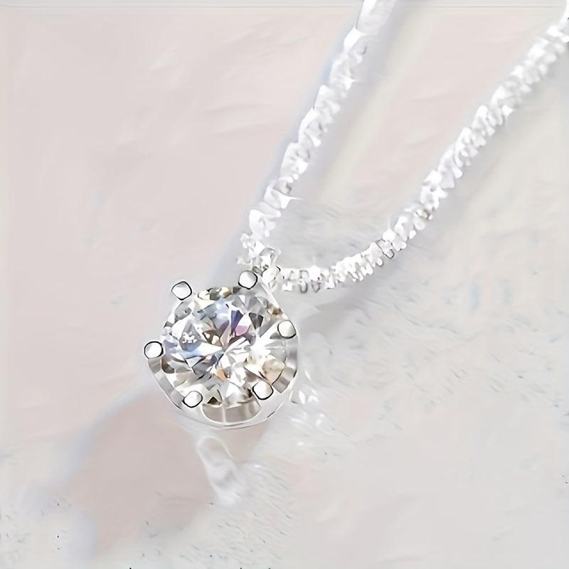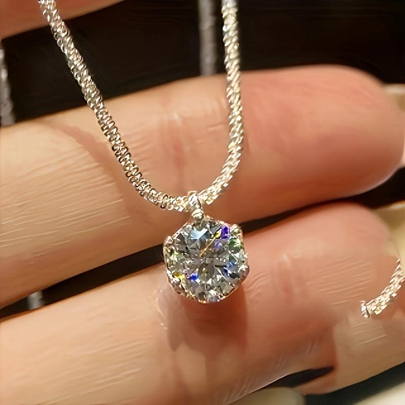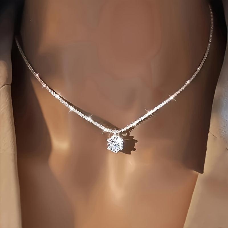 Elegant 925 copper silver-plated pendant necklace with a vintage bohemian design featuring sparkling cubic zirconia accents.