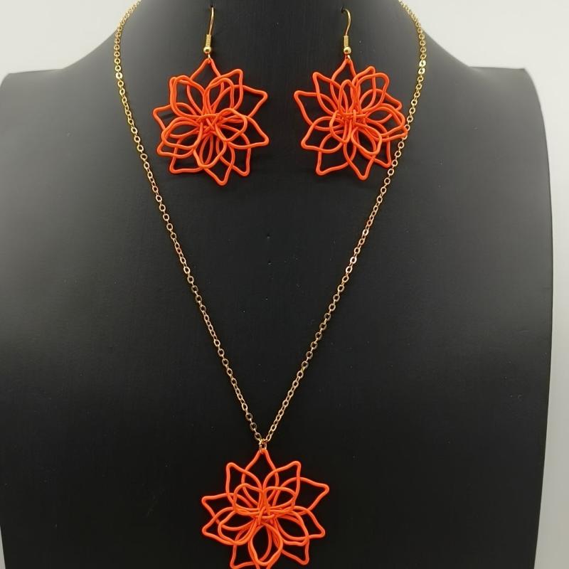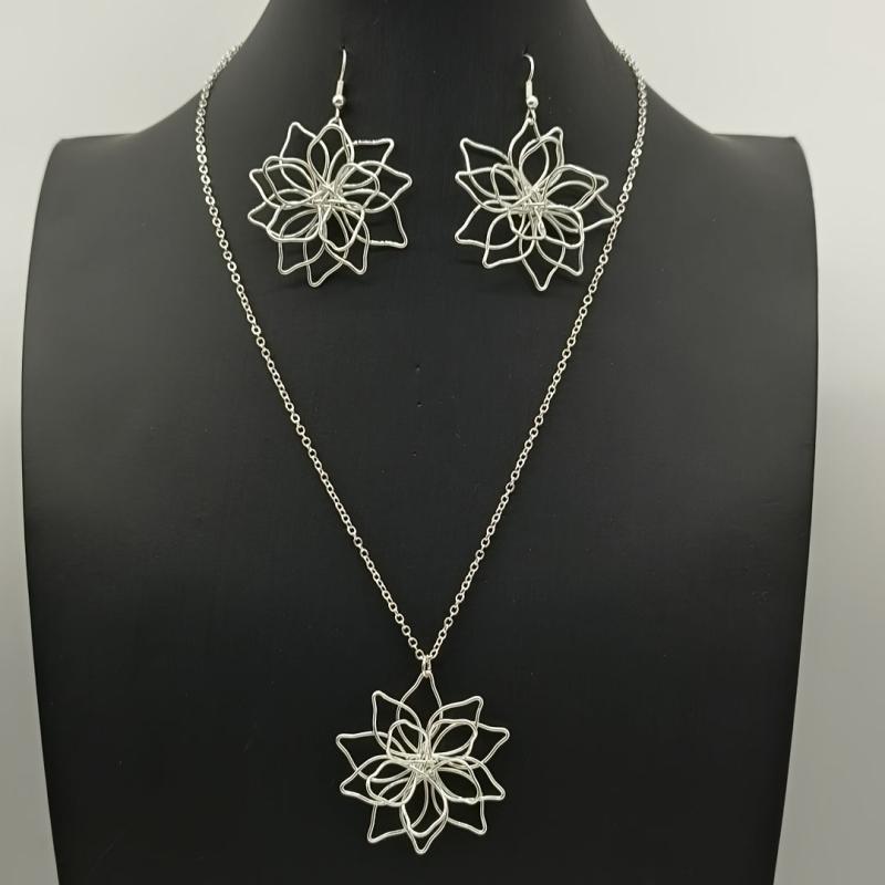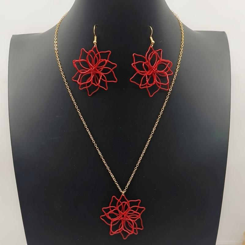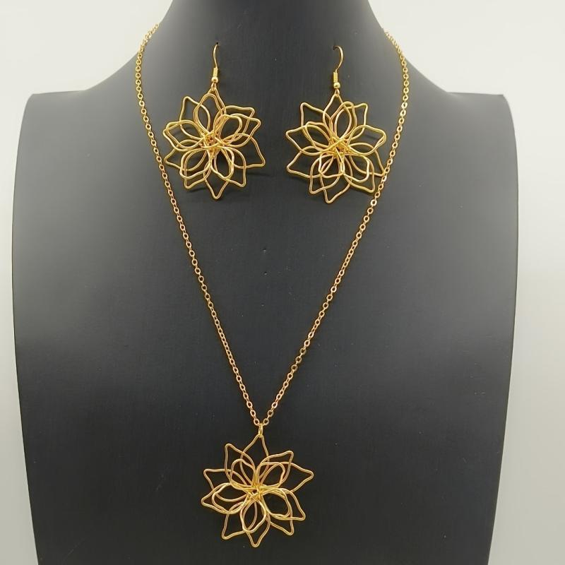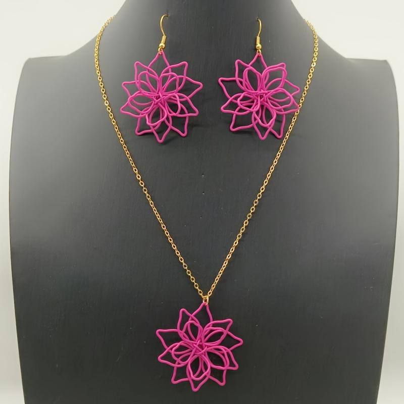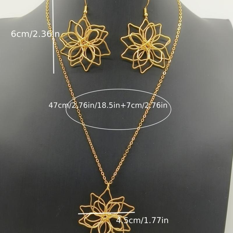 This 2pcs jewelry set features a double layer hollow flower design, with an exaggerated big flower necklace and earrings. Perfect for a versatile and romantic look with a touch of Middle Eastern bohemian style.