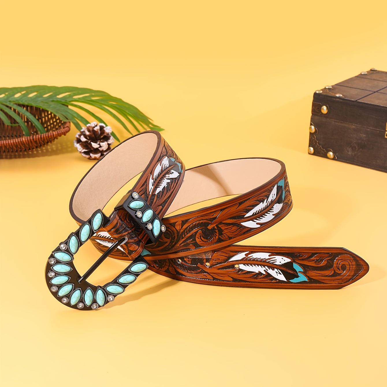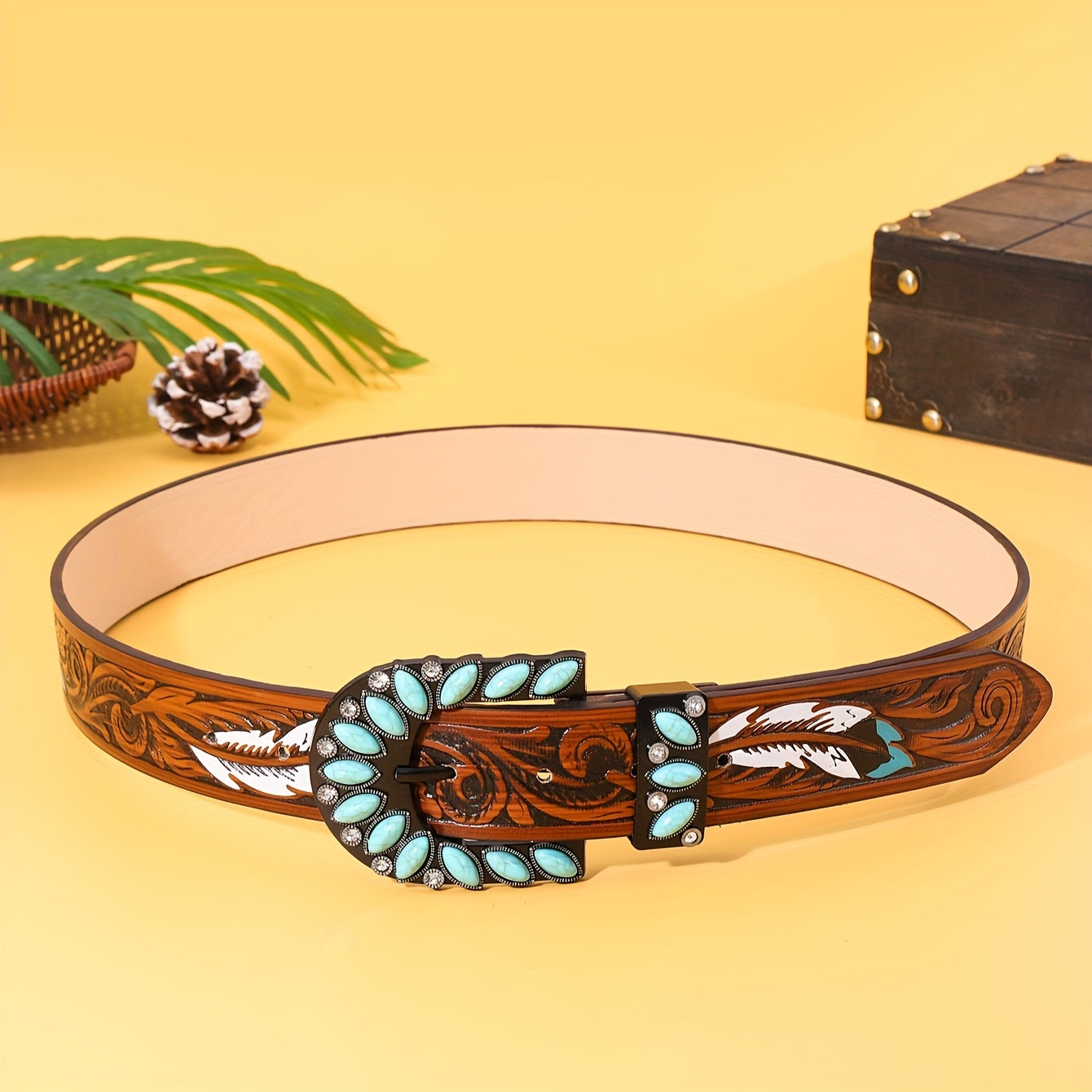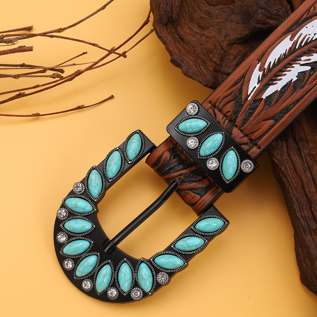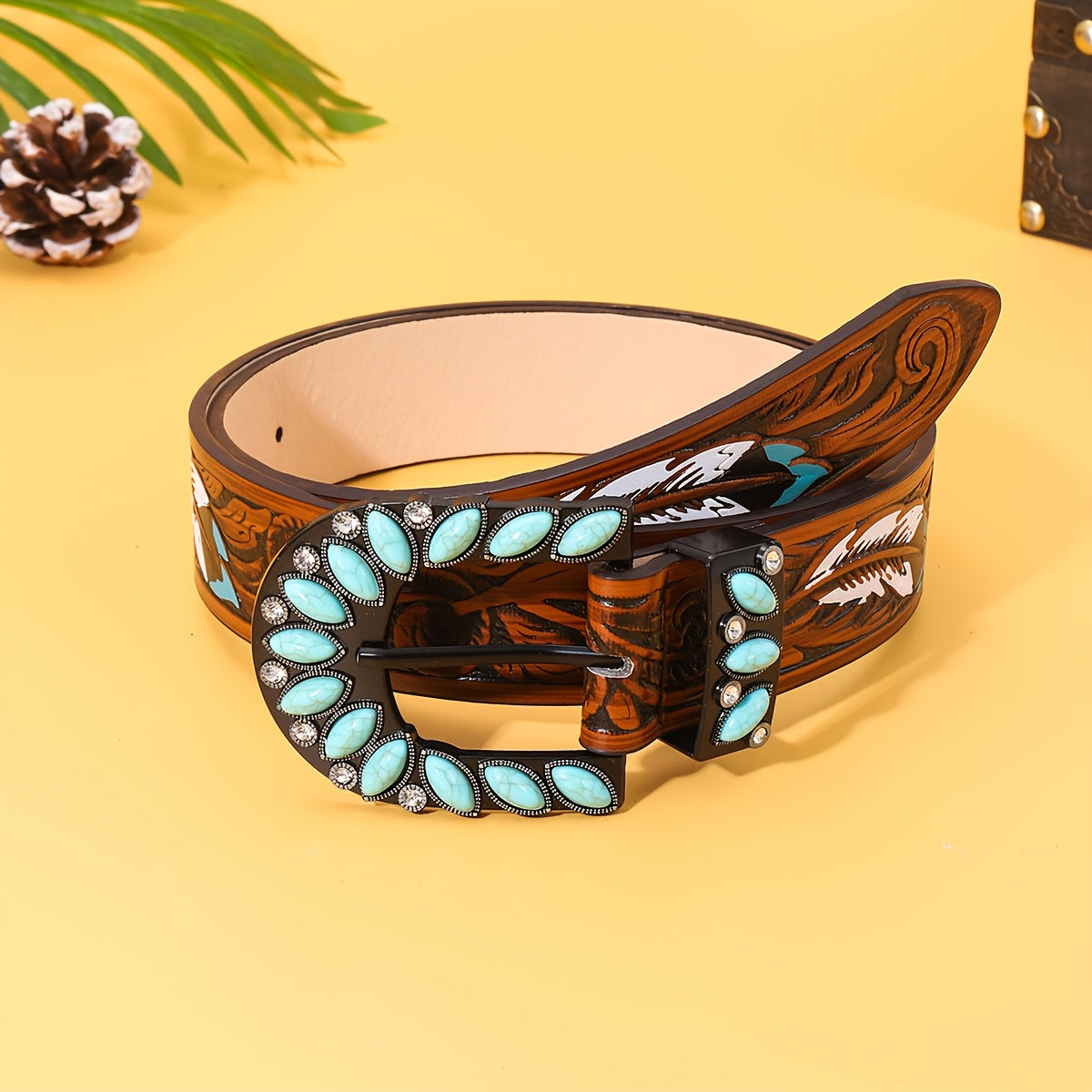 Bohemian Turquoise Buckle Women's Belt Retro Western Style Faux Leather