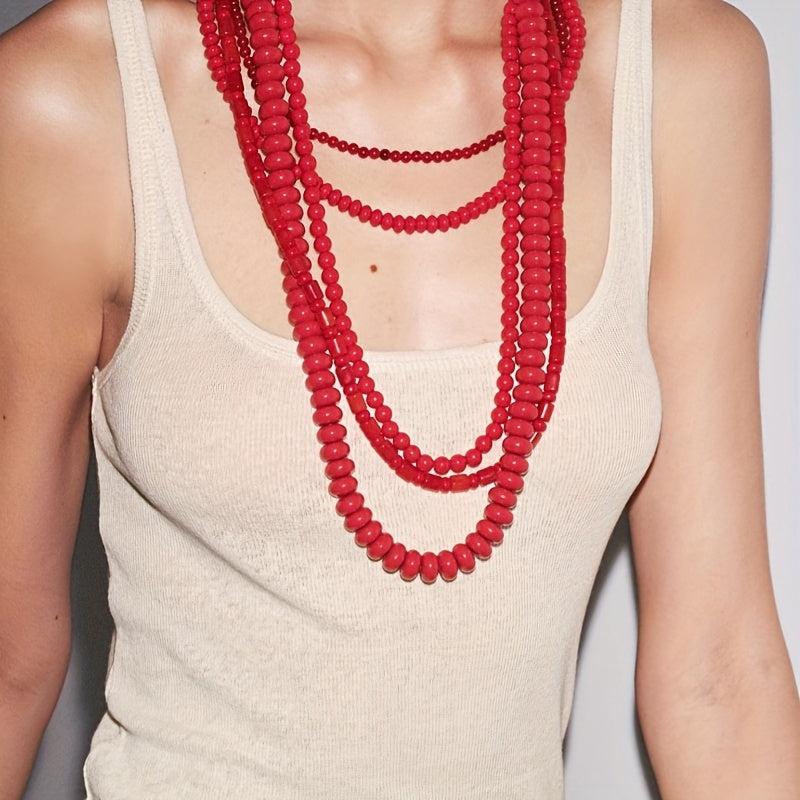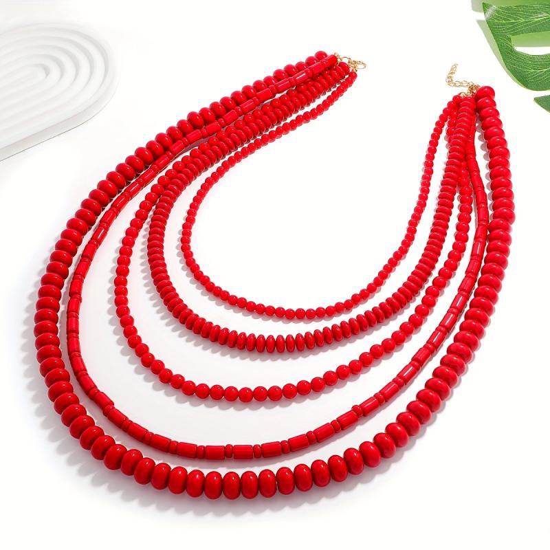 Elevate your style with this colorful resin beaded layered necklace set, perfect for daily outings or vacations. It makes a great gift for family and friends.