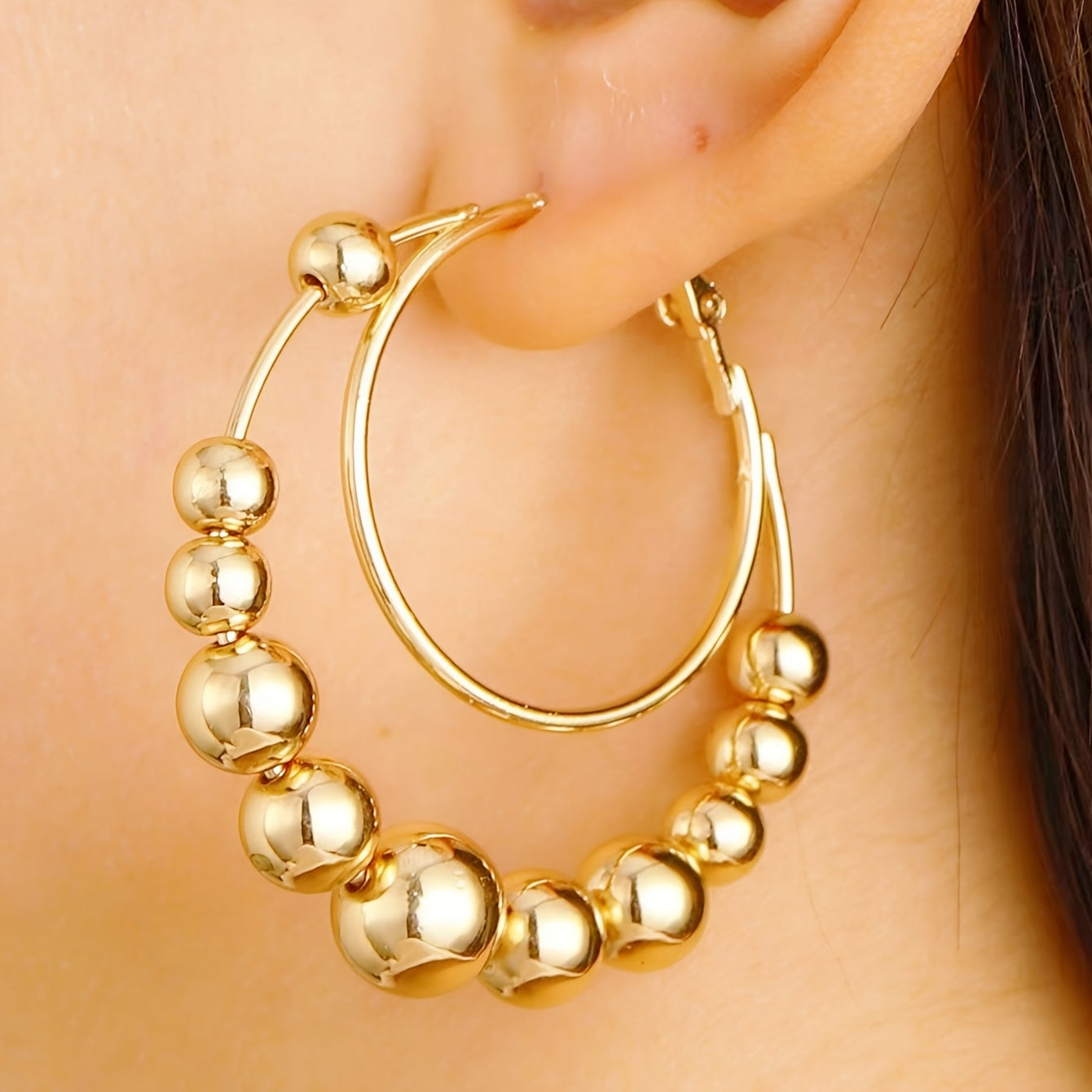 Stylish hoop earrings with iron beads and stainless steel needle. Perfect for daily wear or special celebrations.