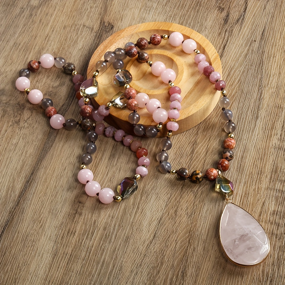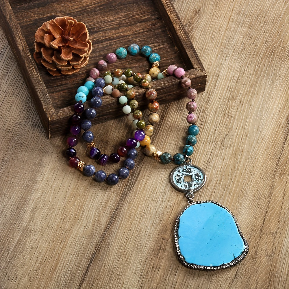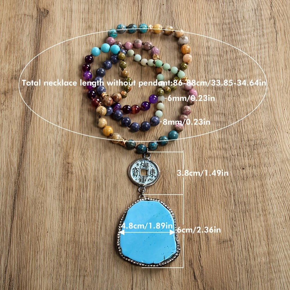 8mm Natural Stone Glass Knot Necklace with Irregular Turquoise Pendant, perfect for daily wear