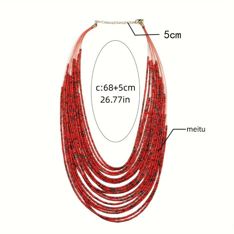 Elevate your style with this vintage Bohemian strand beaded necklace and earrings set. Perfect for both everyday wear and holiday getaways.