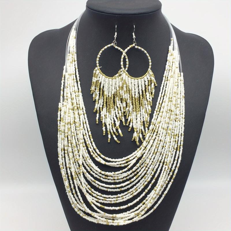 Boho Beaded Necklace & Earrings Set - Everyday Wear & Getaways