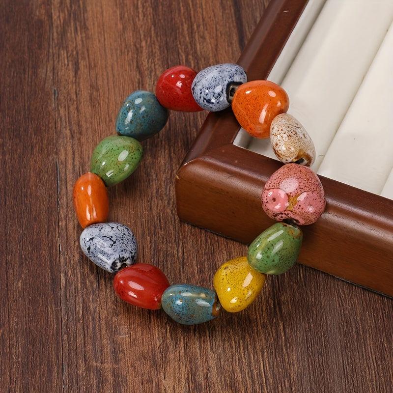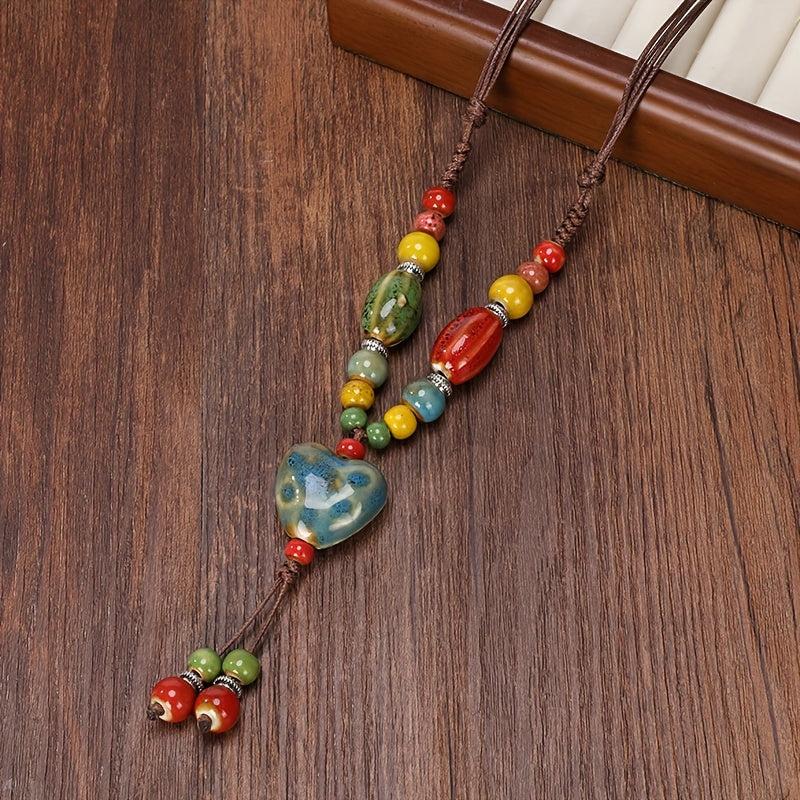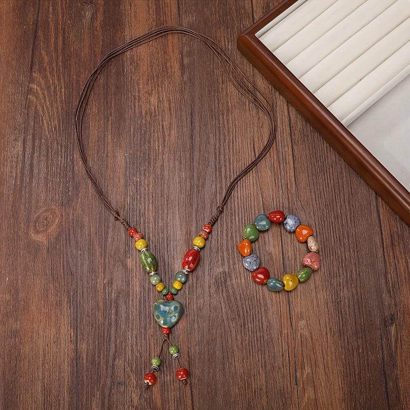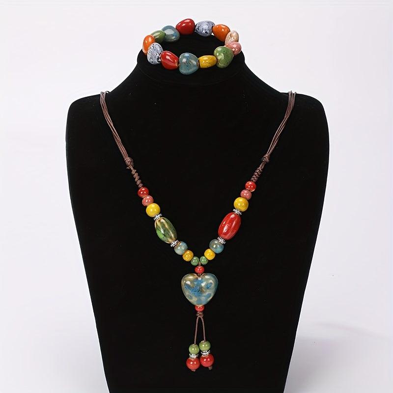 Elevate your style with this boho ceramic heart necklace and bracelet set featuring April birthstone natural stone mosaic. Perfect for adding a touch of elegance to any outfit.