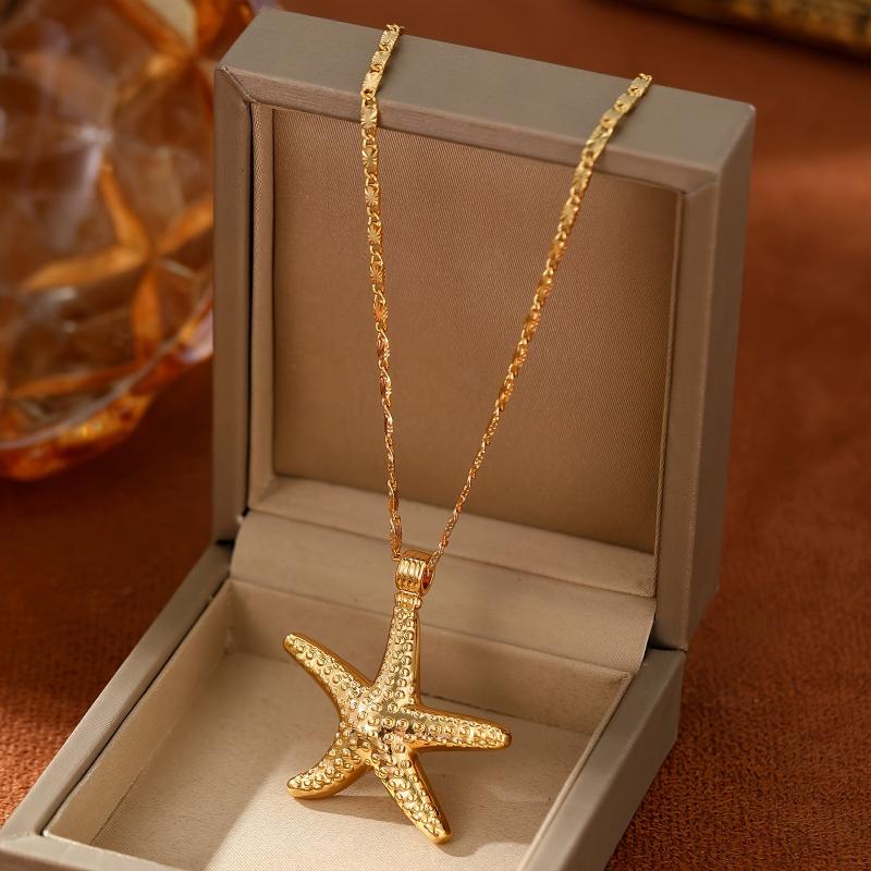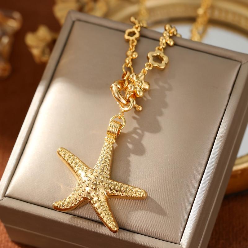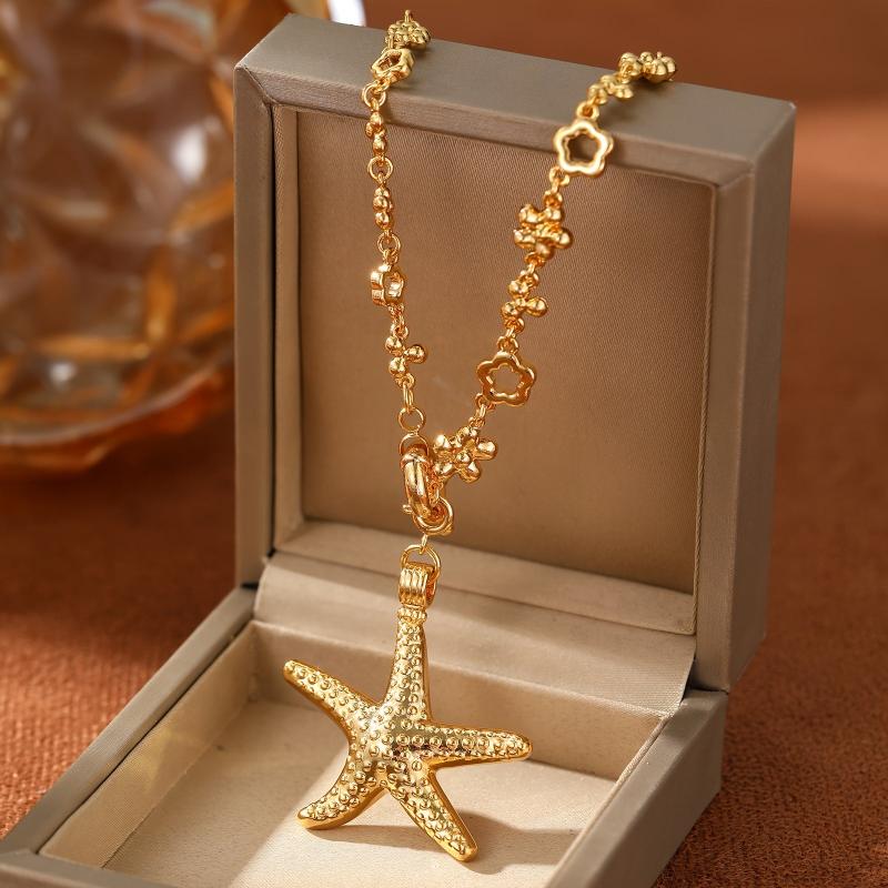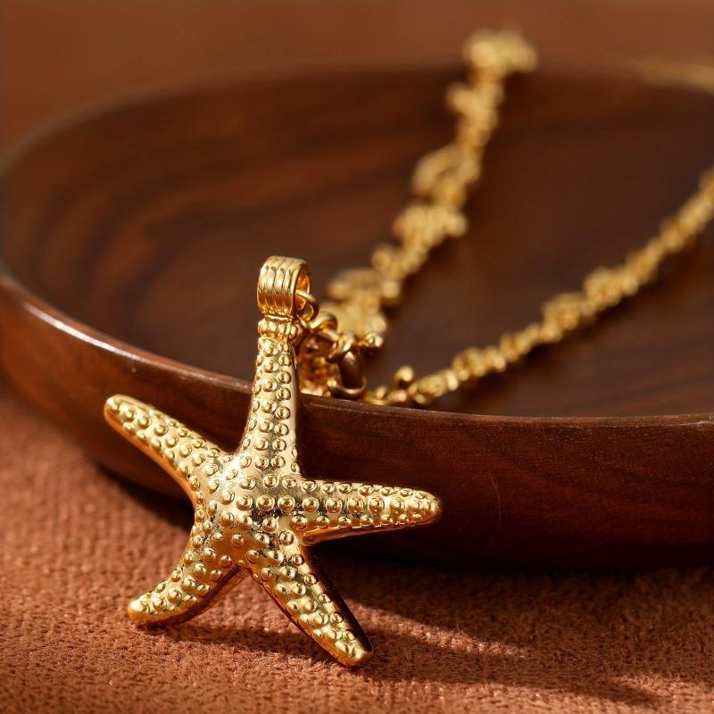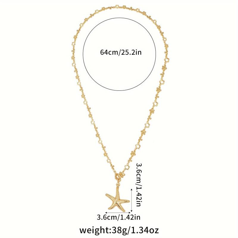Add a touch of beachy bohemian charm to your outfit with this starfish pendant necklace. Perfect for vacation and casual wear, the floral chain and golden accents make it ideal for parties and beach outings.