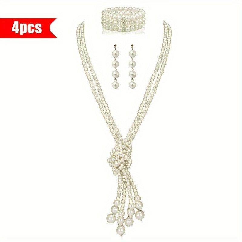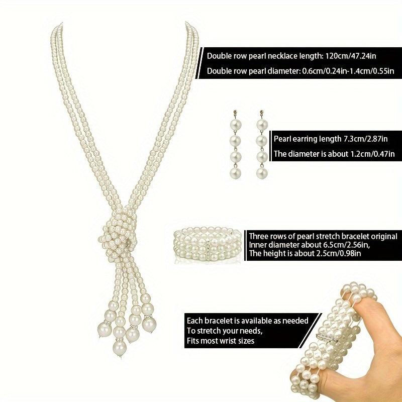 Complete your bohemian look with this stylish faux jewelry set featuring long tassel accents. Set includes 1 pair of earrings, 1 layered bracelet, and 1 extra long double layer necklace with vintage antique charm.