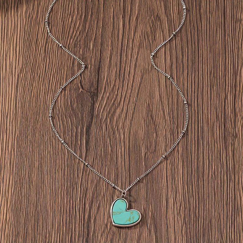 Boho Turquoise Heart Necklace Vintage Chain Jewelry Gift