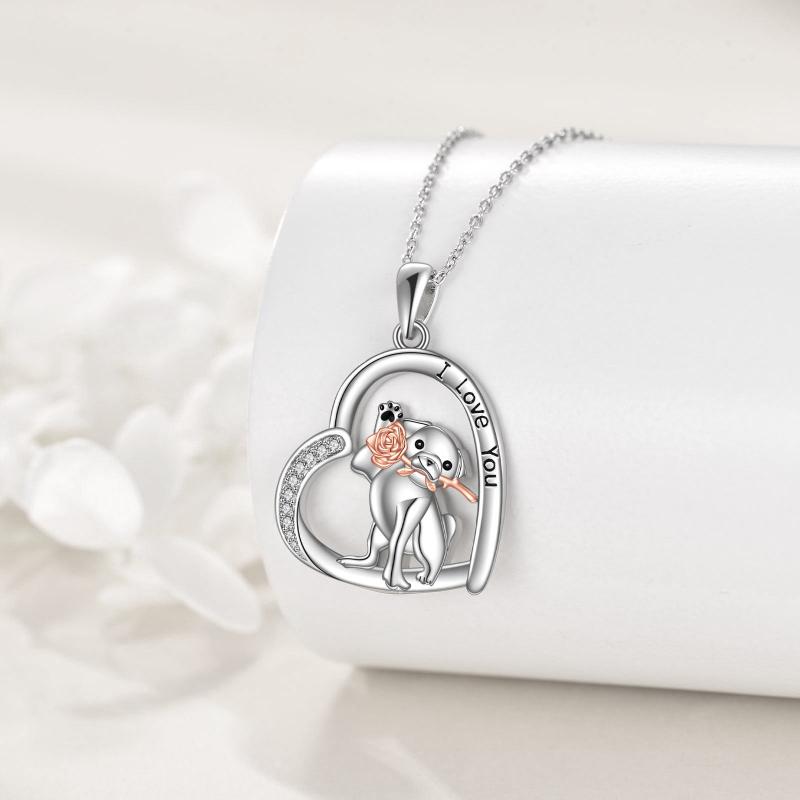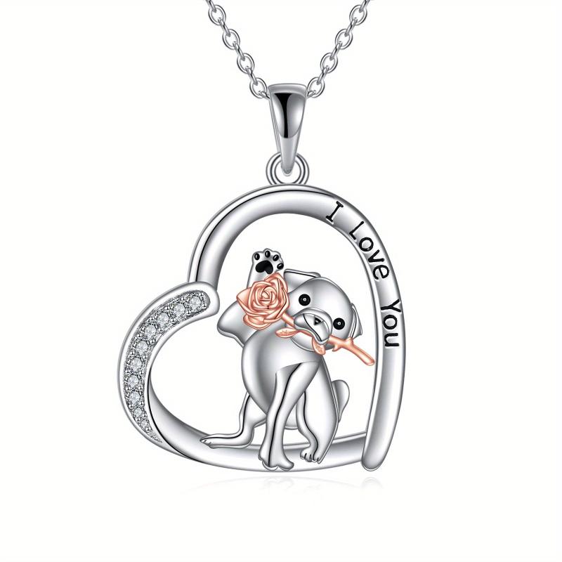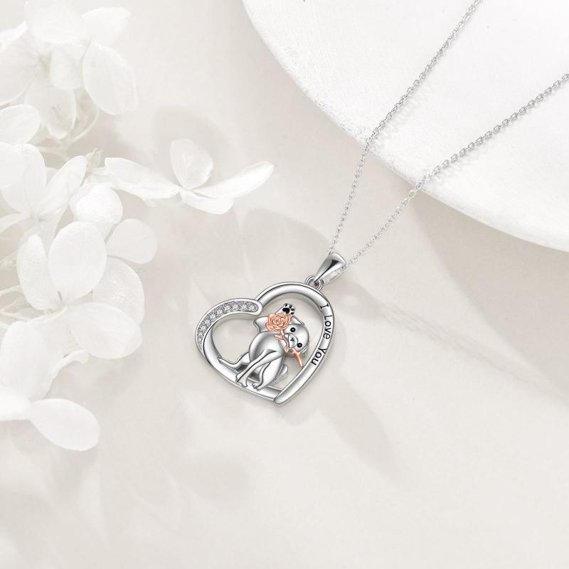 Show your love for bulldogs with this elegant sterling silver necklace featuring a heart pendant design.