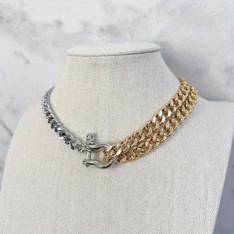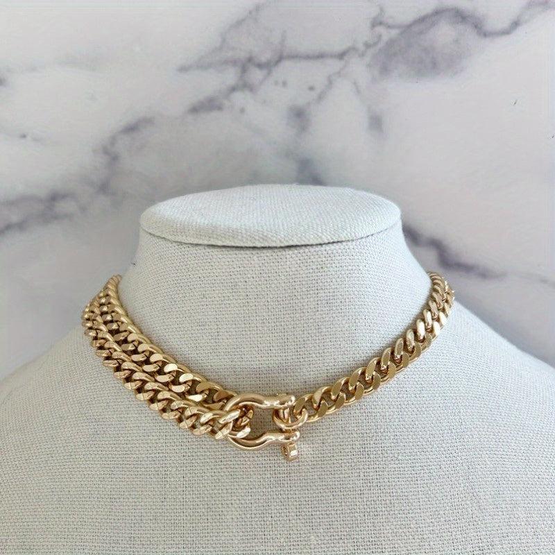 This double layered U shaped necklace features a chunky chain design with a French style punk hip hop Cuban link. Made with iron material, this necklace is perfect for adding a stylish touch to any outfit.