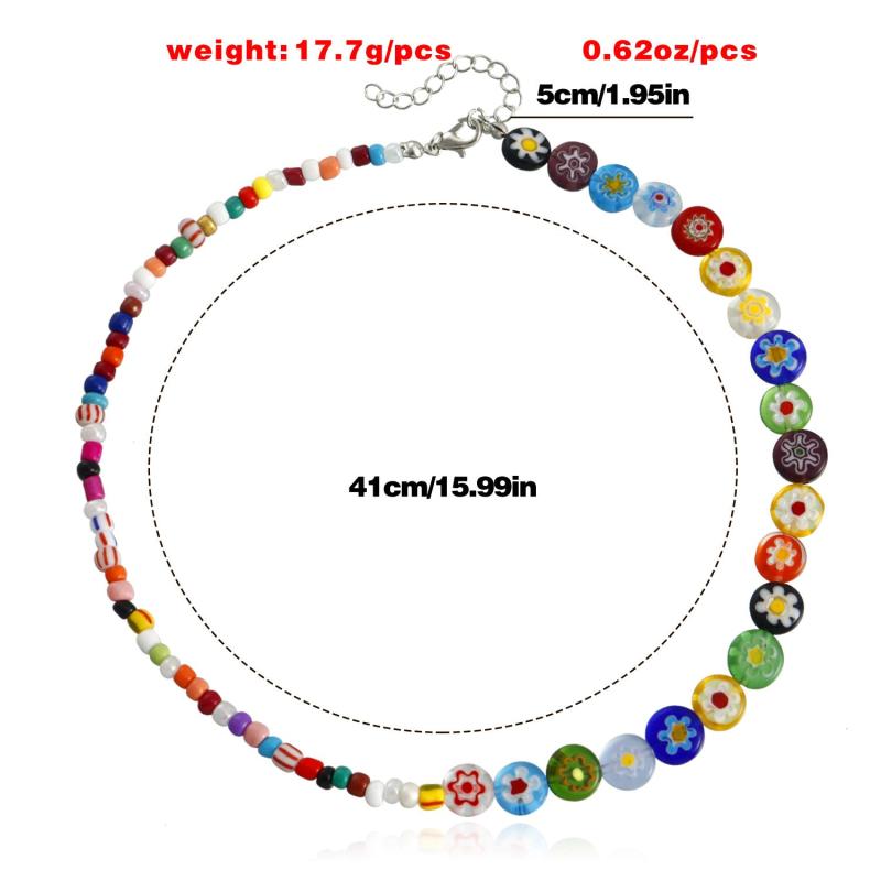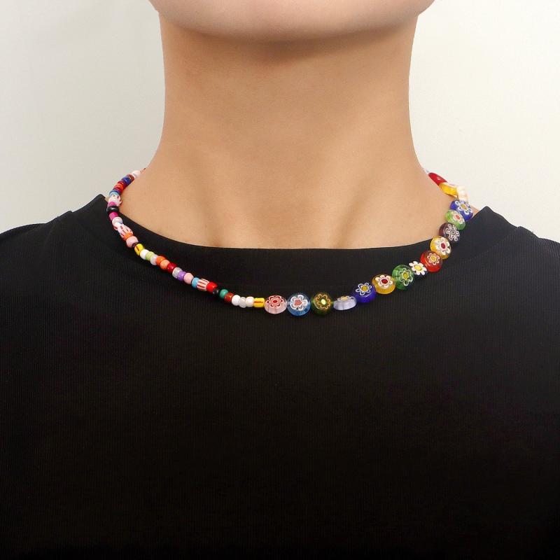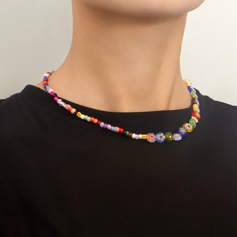 Colorful Beaded Choker Necklace for Couples Summer Freshness