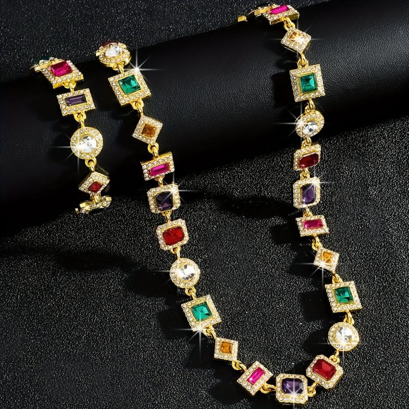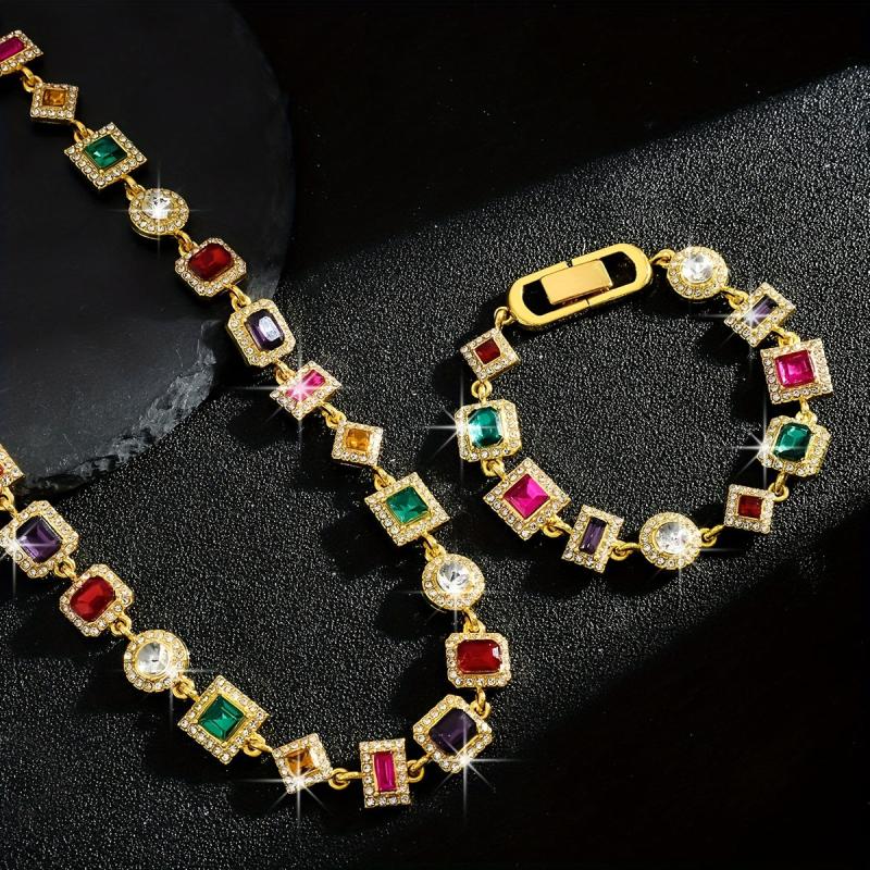 Elevate your style with this vibrant faux crystal jewelry set. Perfect for adding a pop of color to any outfit.
