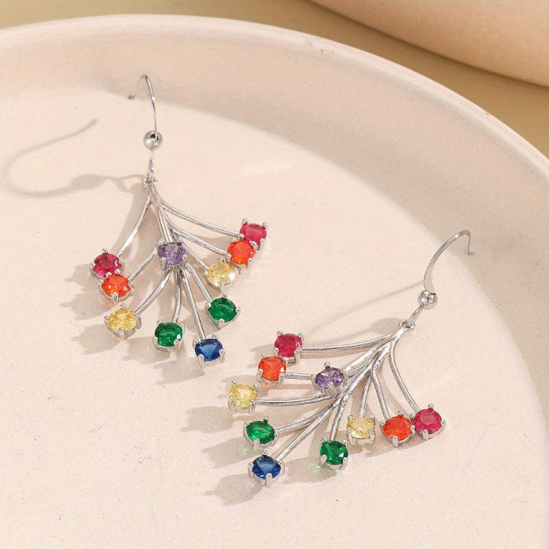 Elevate your style with these vibrant women's dangle earrings featuring synthetic gemstone accents. Crafted from 18K golden plated copper, these earrings are perfect for Valentine's Day and any special occasion.