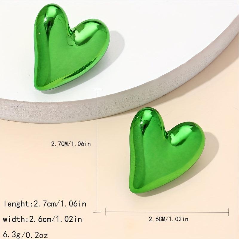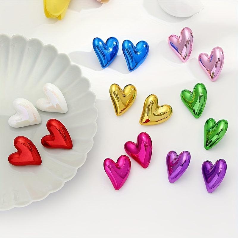 These adorable heart stud earrings are made from glossy acrylic material. Perfect for adding a pop of color to your outfit. Makes a great gift for any occasion.