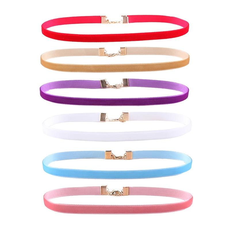 This 6-piece set of colorful velvet ribbon necklaces offers a vintage gothic style that's perfect for adding a bold touch to your outfit. These necklaces are designed for women who love punk jewelry.