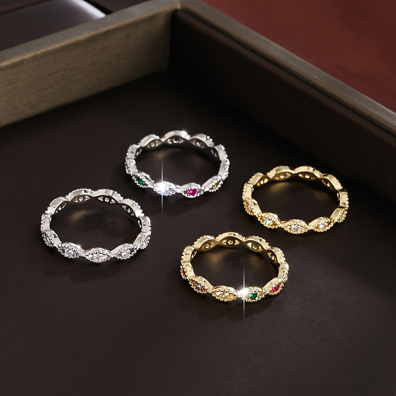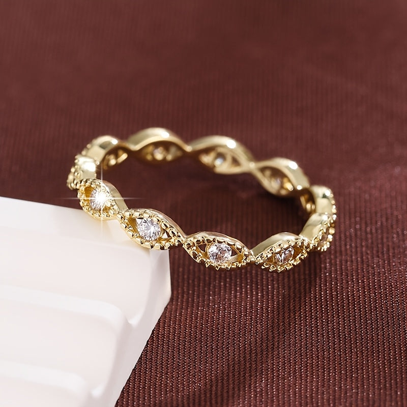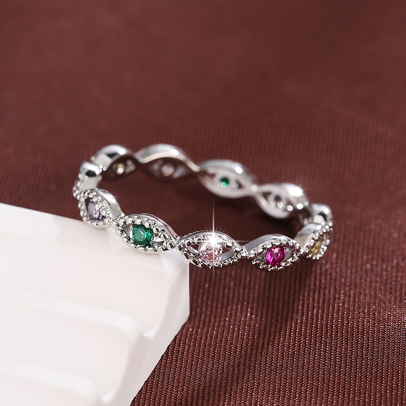 Add a touch of elegance to your look with this stunning eye-shaped ring. Perfect for daily wear or special occasions, this versatile accessory features a twist band design and sparkling cubic zirconia accents.
