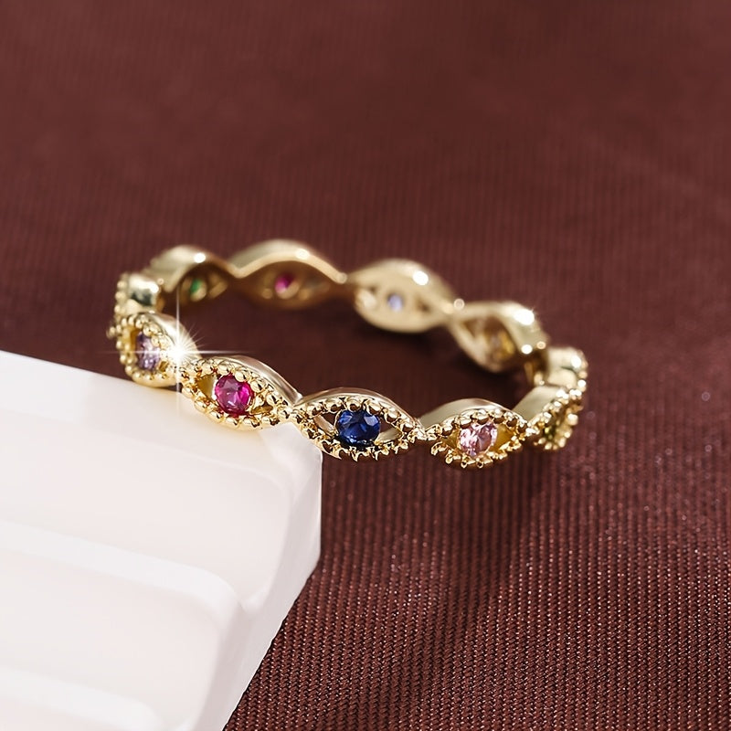 Copper Eye Ring with Cubic Zirconia Golden Plated Twist Band
