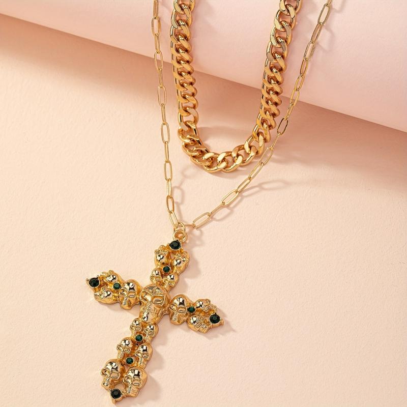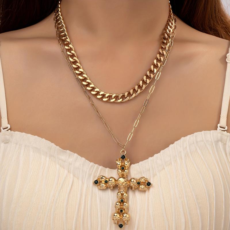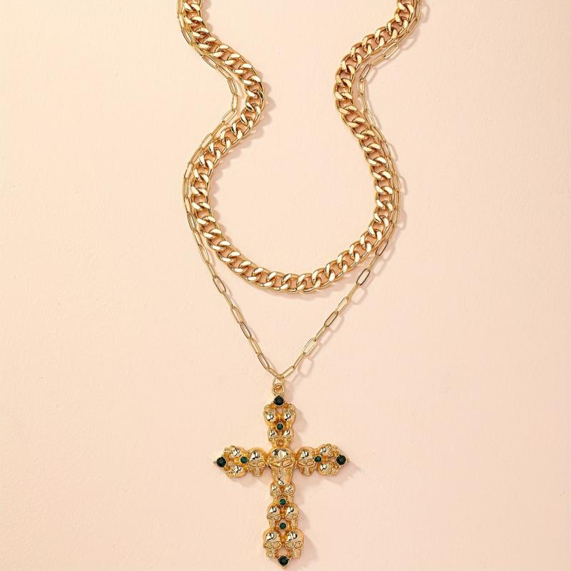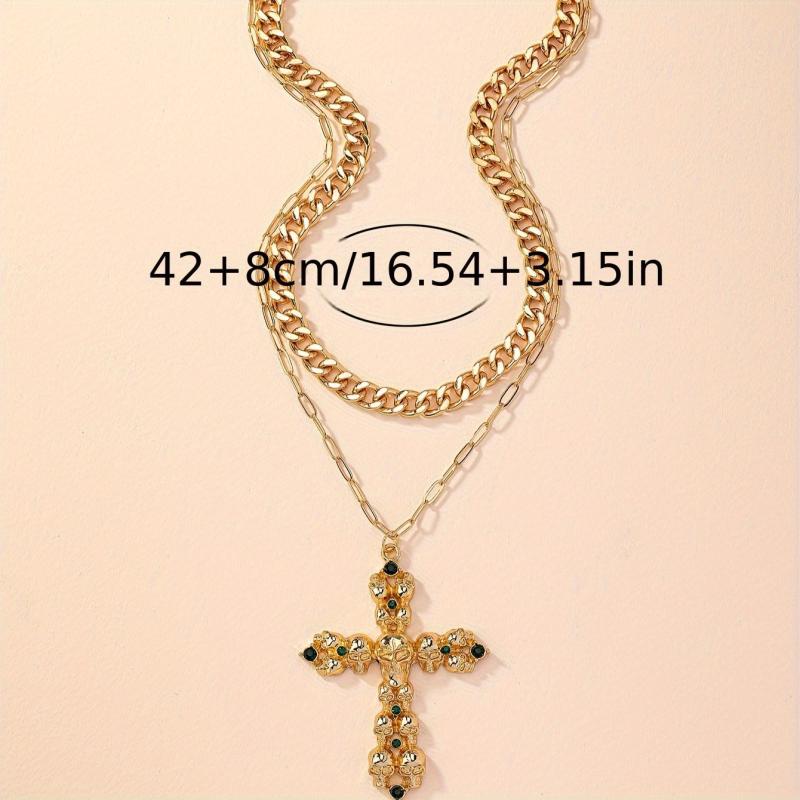 Add a touch of sophistication to your outfit with this cross pendant necklace featuring a sparkling golden tone chain. Perfect for parties and daily wear, this versatile jewelry piece is suitable for all seasons.