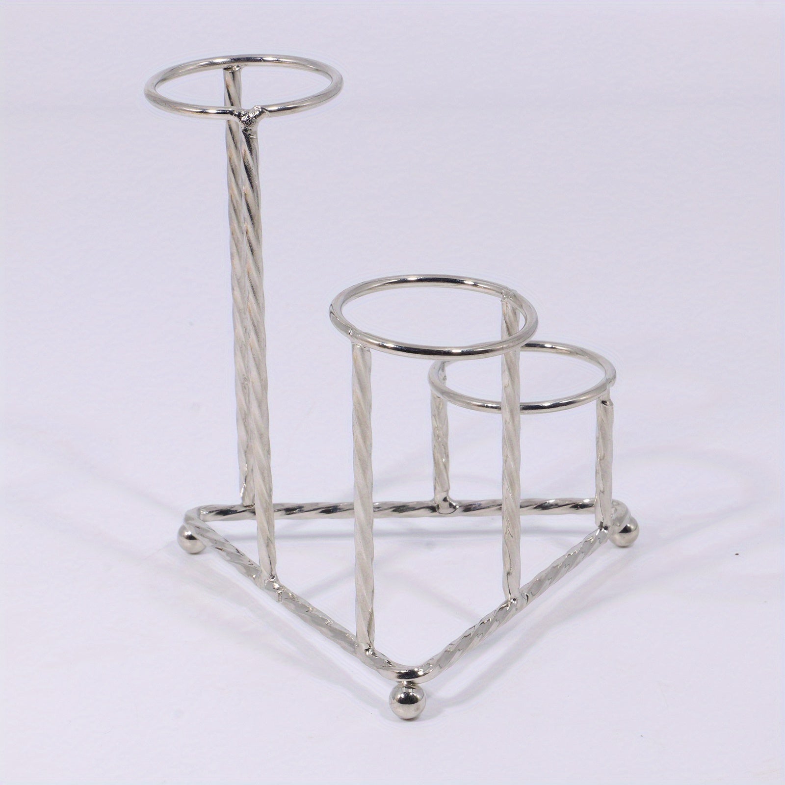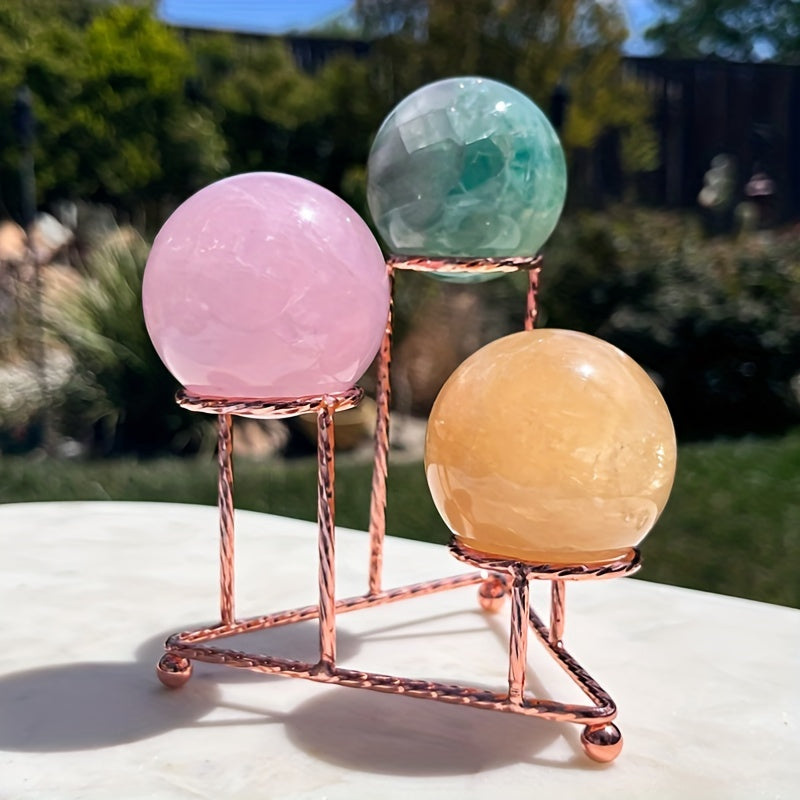 Elegantly designed wrought iron plated silver frame display stand for three crystal balls. Perfect for showcasing healing crystals and decorative jewelry.