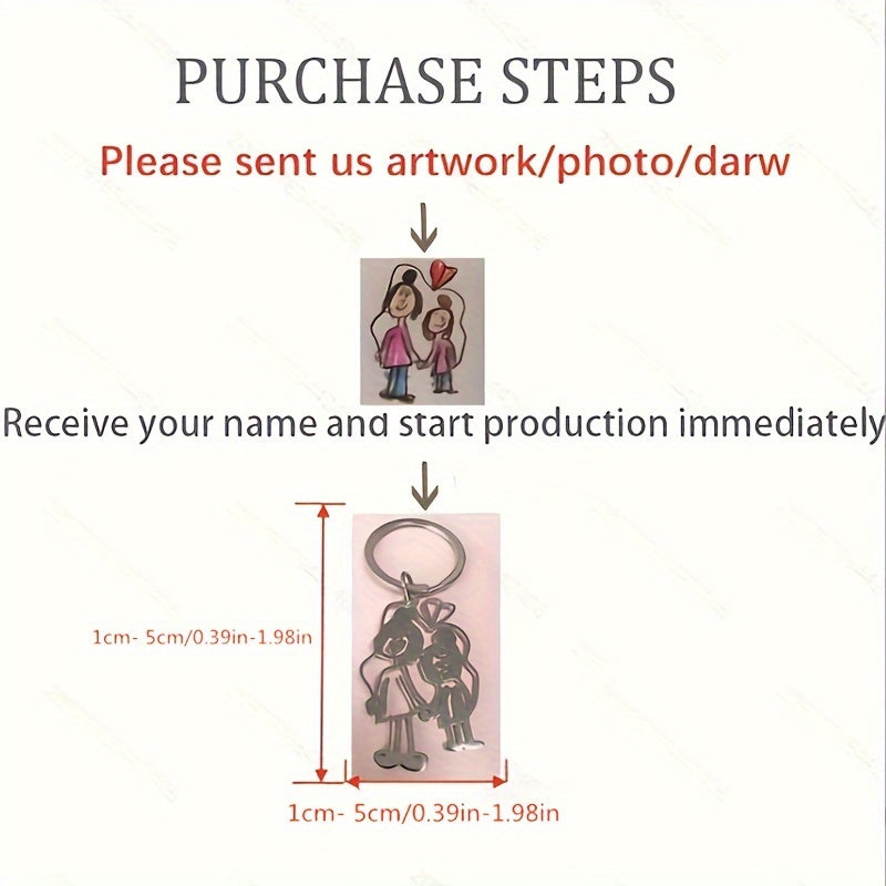 Keep your memories close with this personalized keychain featuring a custom handwriting or drawing. This keychain is a perfect gift for someone special or a beautiful way to remember a loved one.