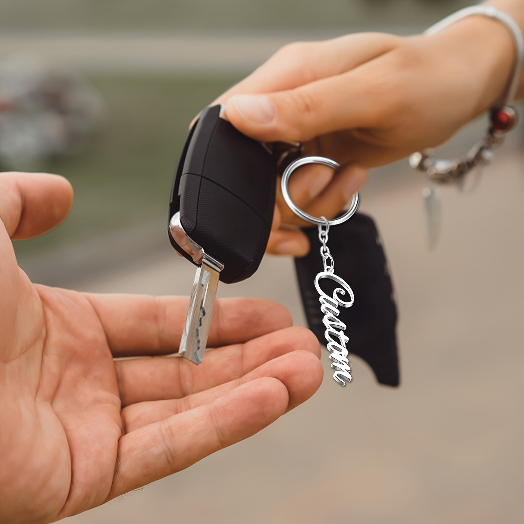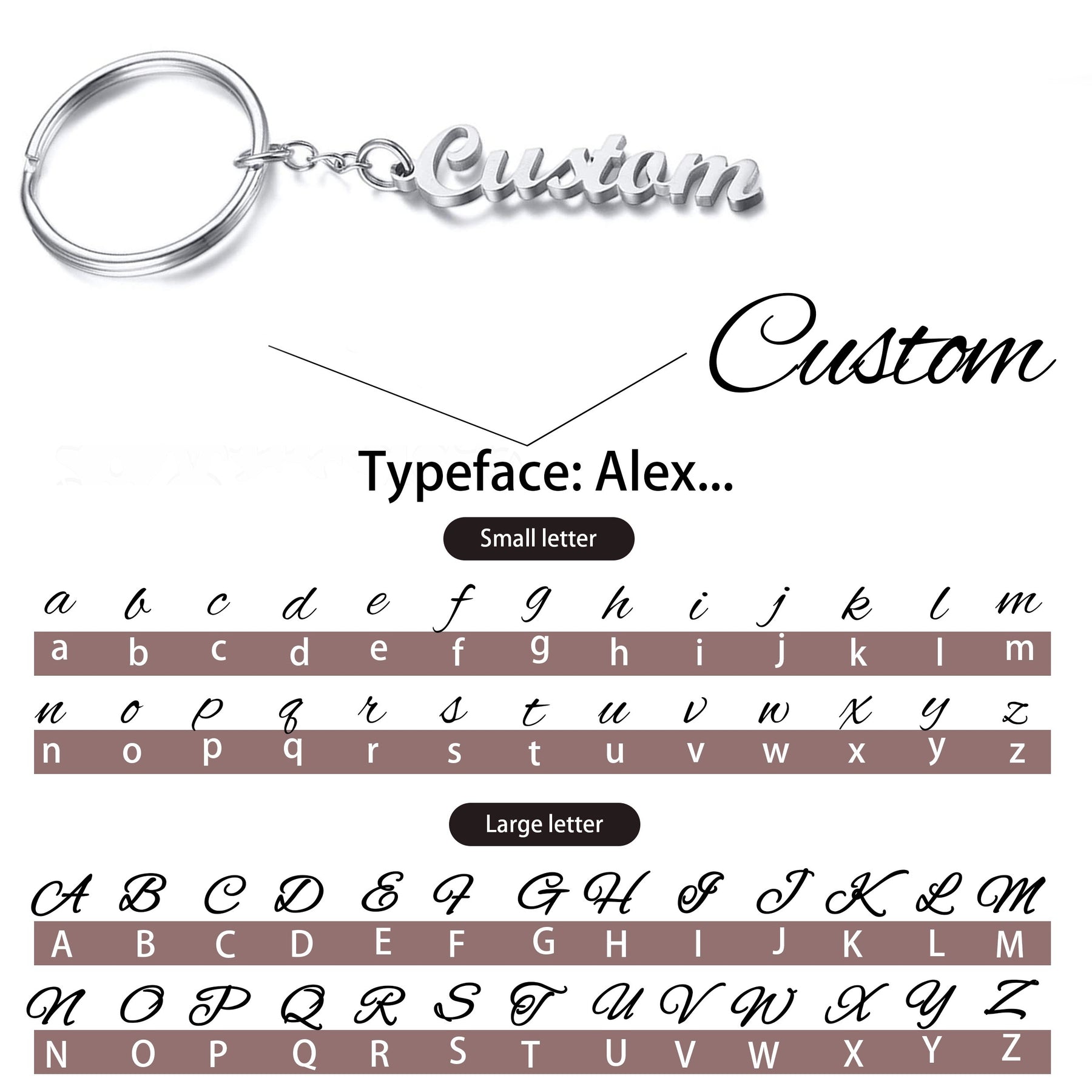 This custom name tag keychain is made of high-quality stainless steel and can be personalized with any letters. It's a perfect gift for women, men, fathers, and mothers.