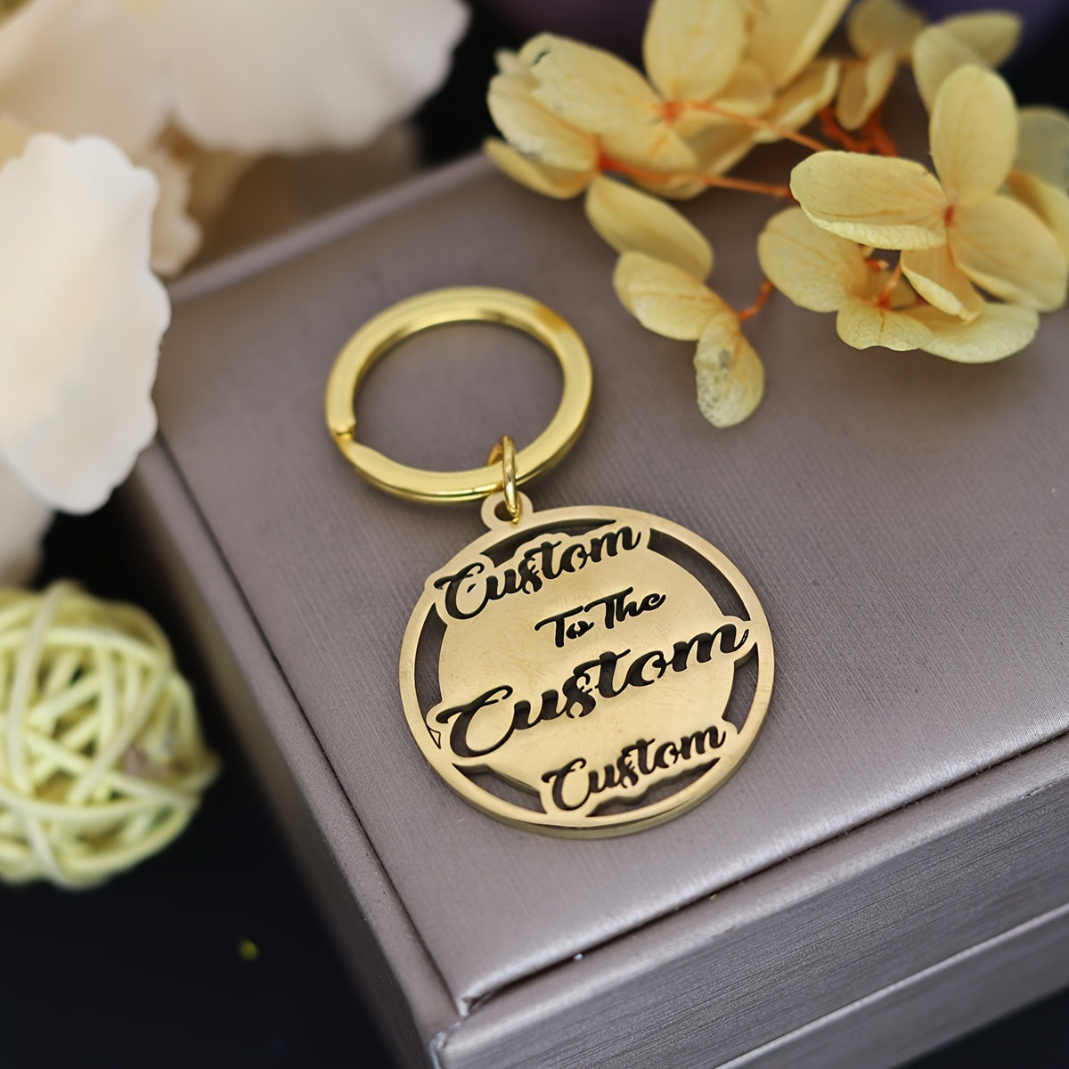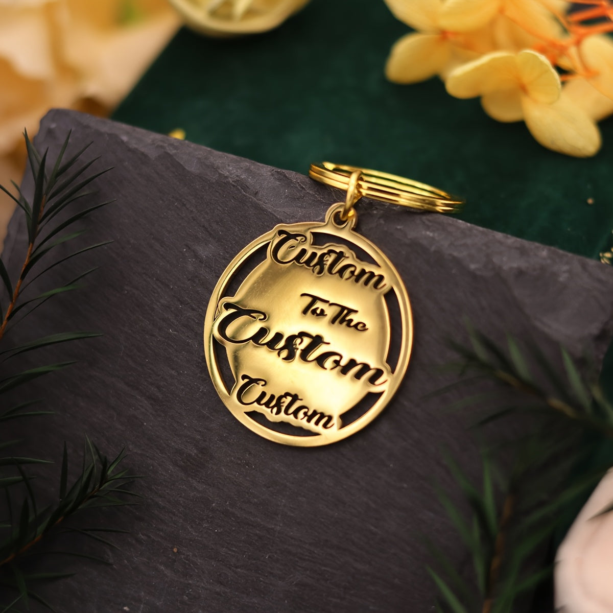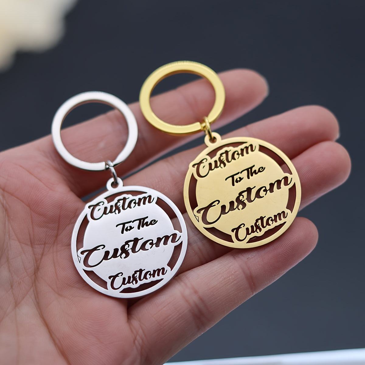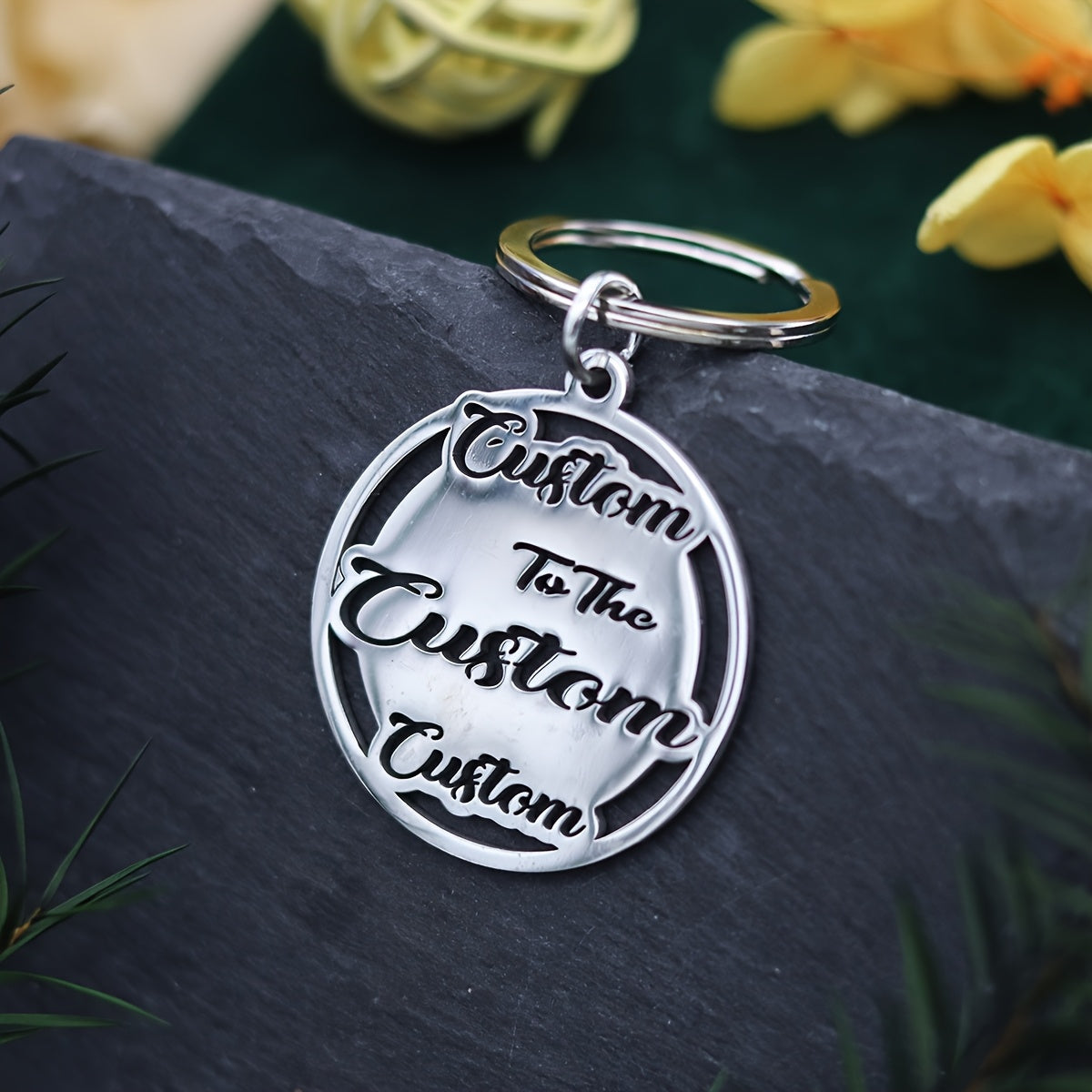 This personalized keychain features a stylish round pendant that can be customized with multiple names. Made of high-quality stainless steel, it's a perfect gift for men and women, ideal for family and friends.