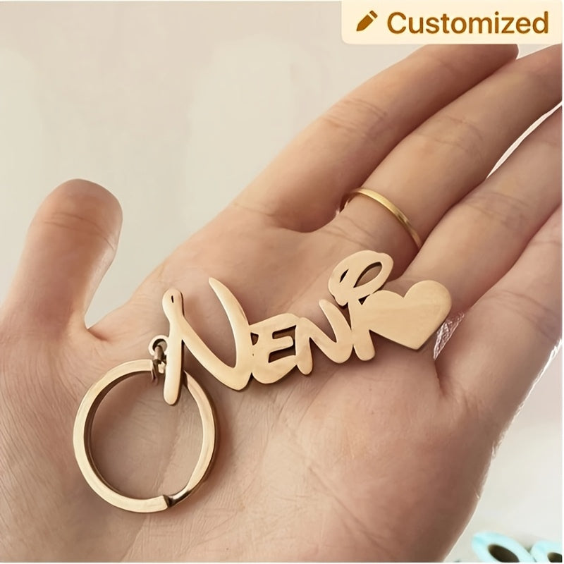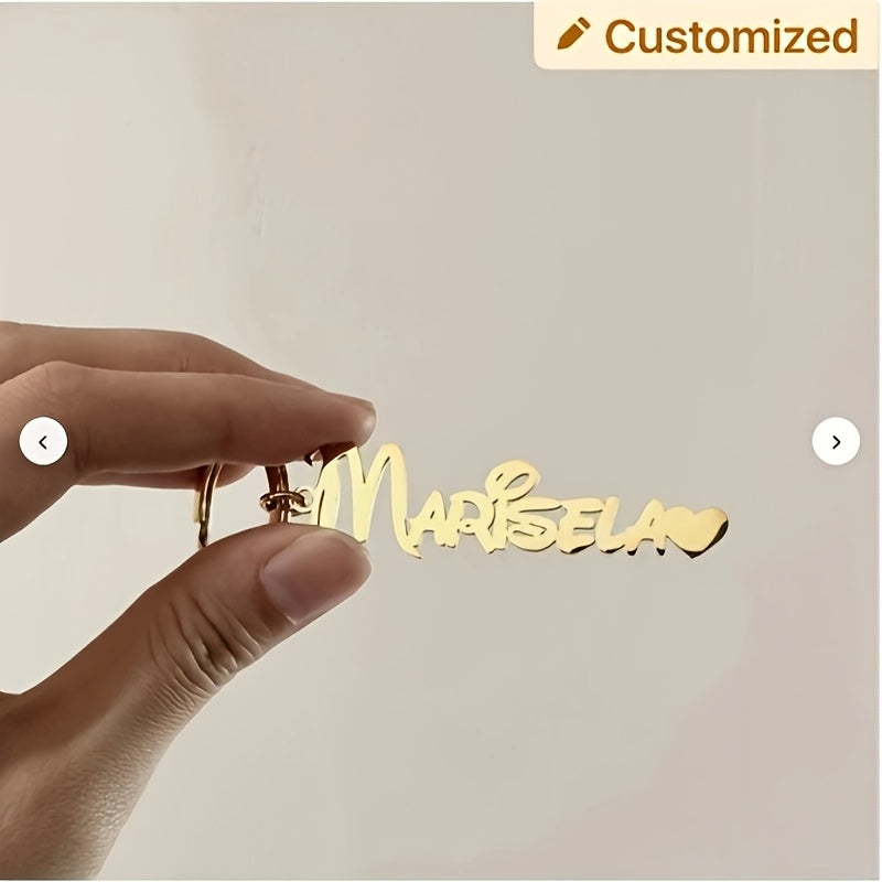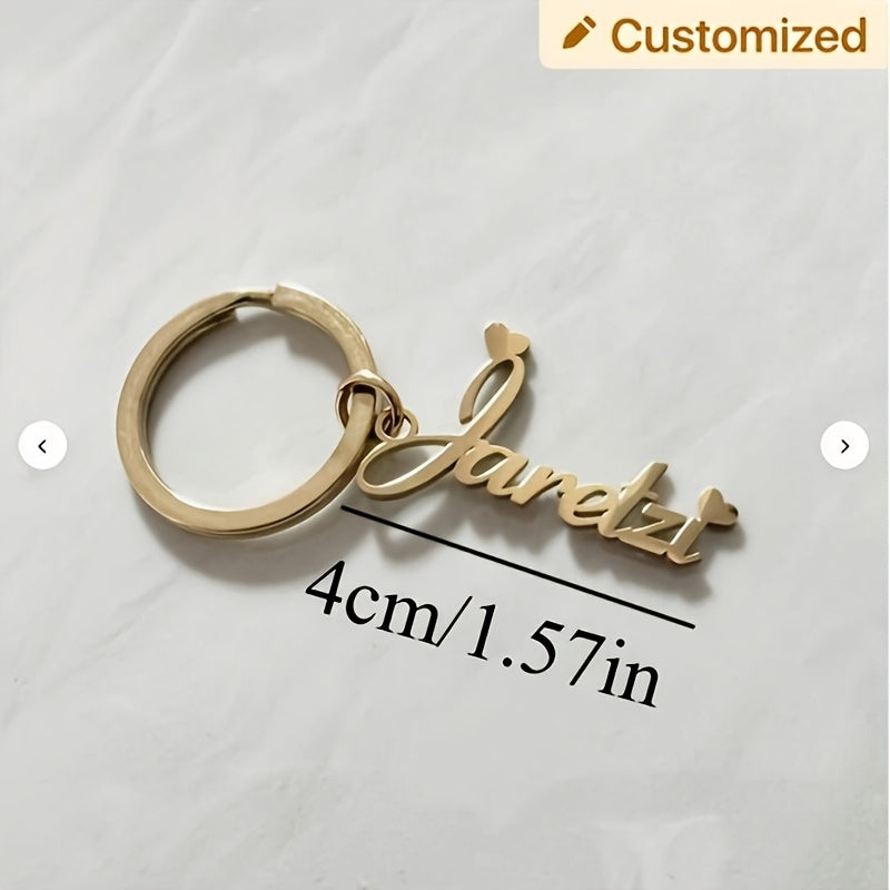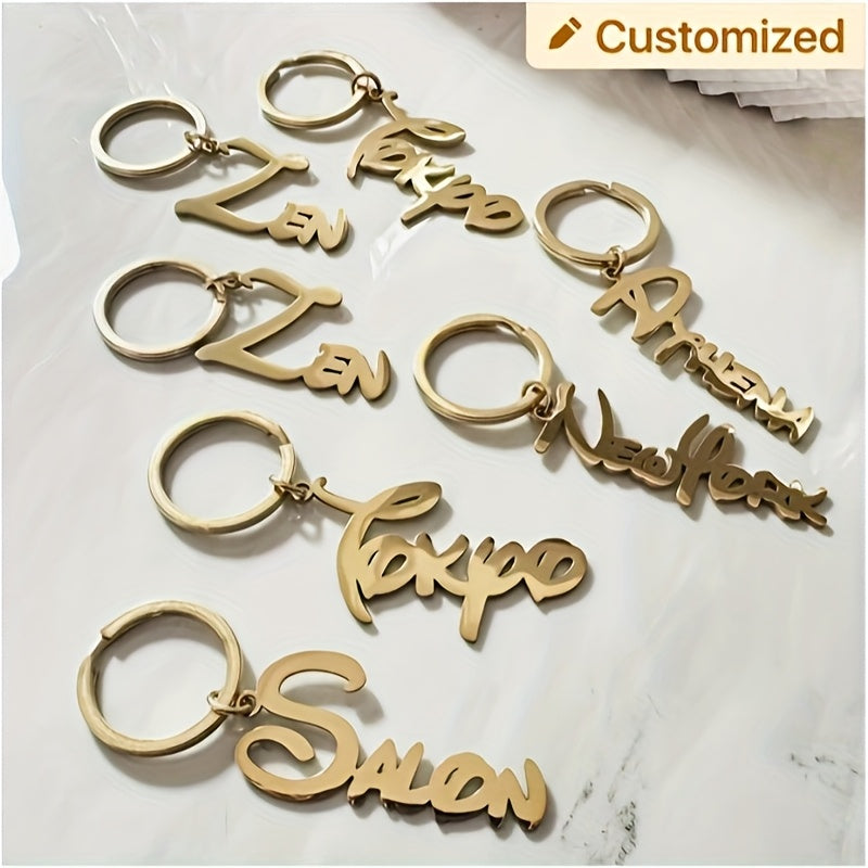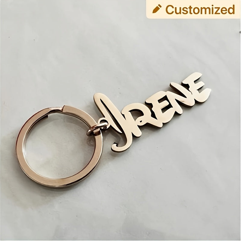 This fashionable personalized keychain features a unique stainless steel tag with customized name initials. Perfect as a gift for both men and women.