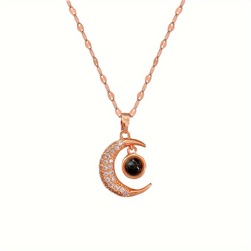 Customized Projection Necklace With Pictures Copper Inlaid Moon Pendant