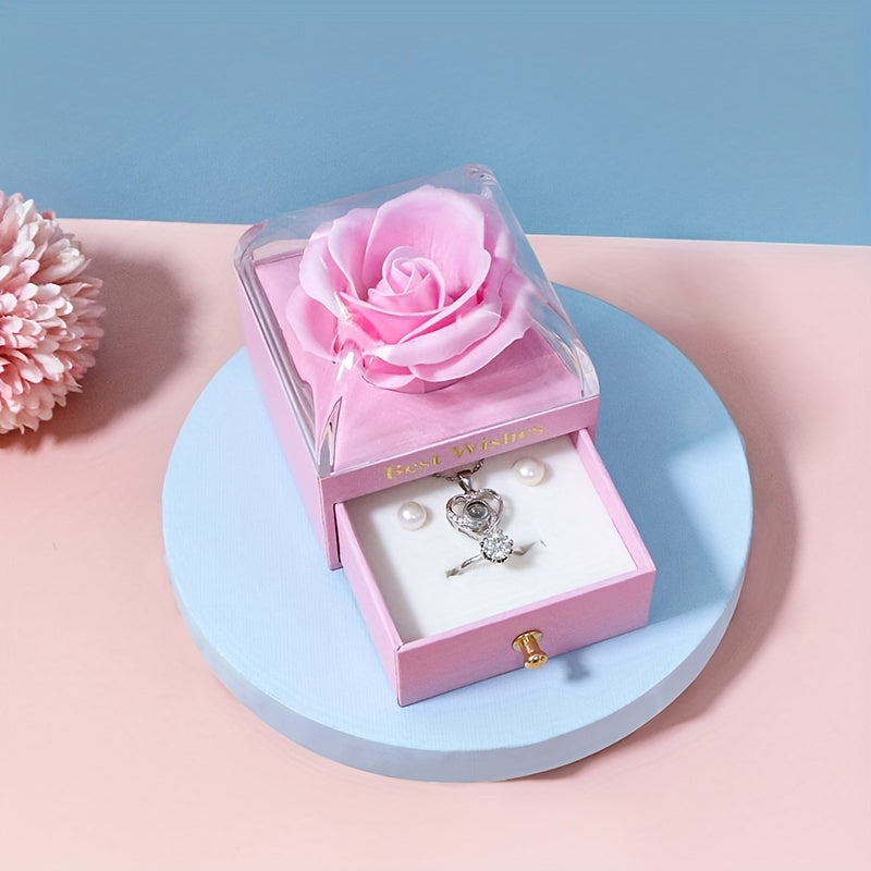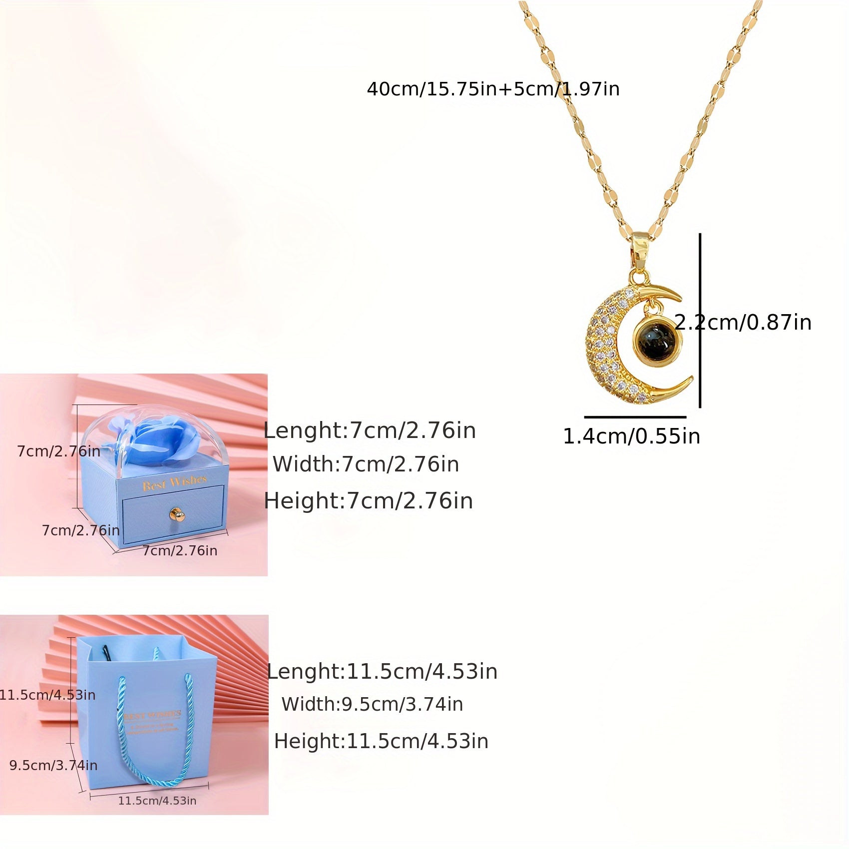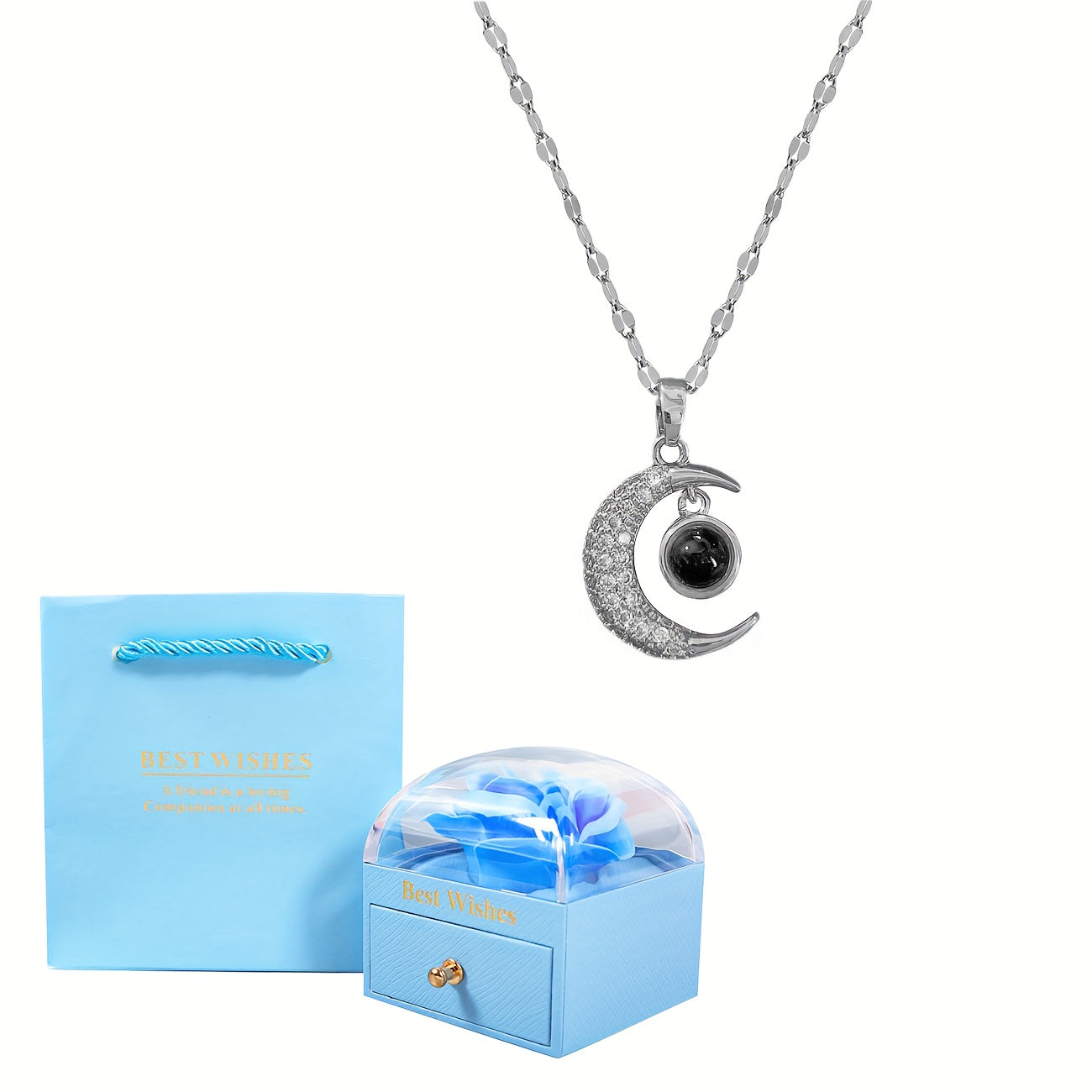 This personalized necklace features a moon pendant with a customized projection of pictures. Inlaid zirconia and rose details make it a romantic gift for Mother's Day or any occasion.