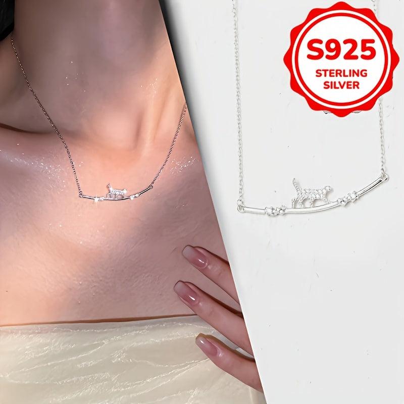 Adorable cat pendant necklace featuring sparkling cubic zirconia stones.