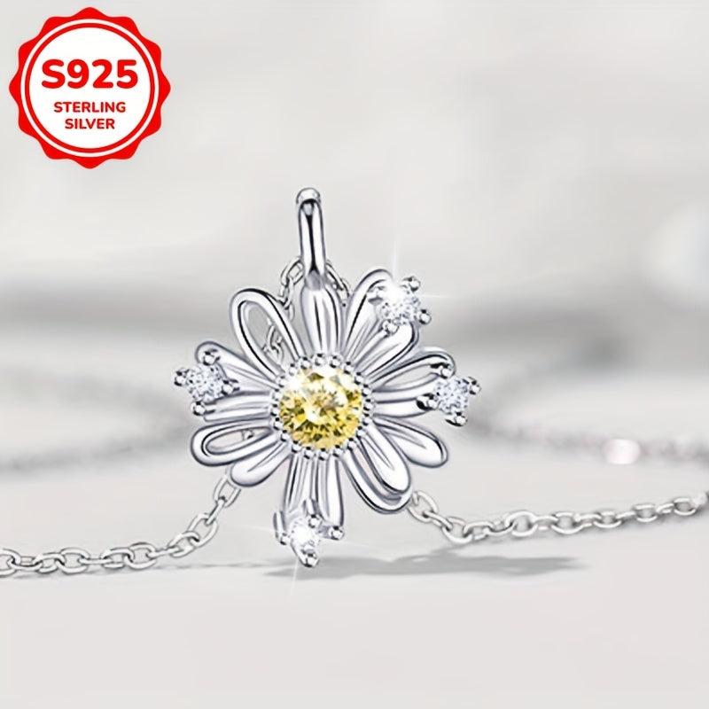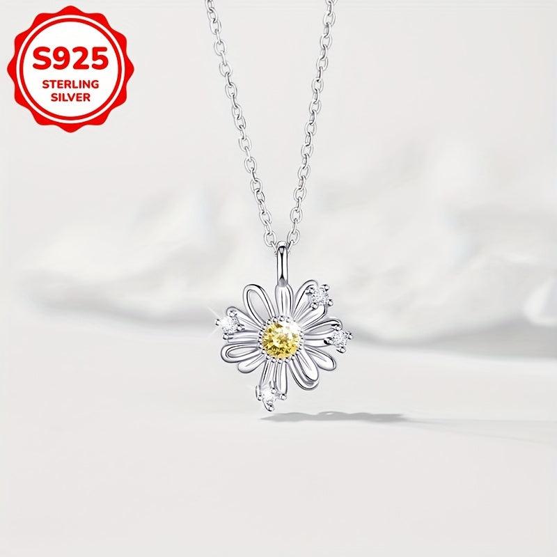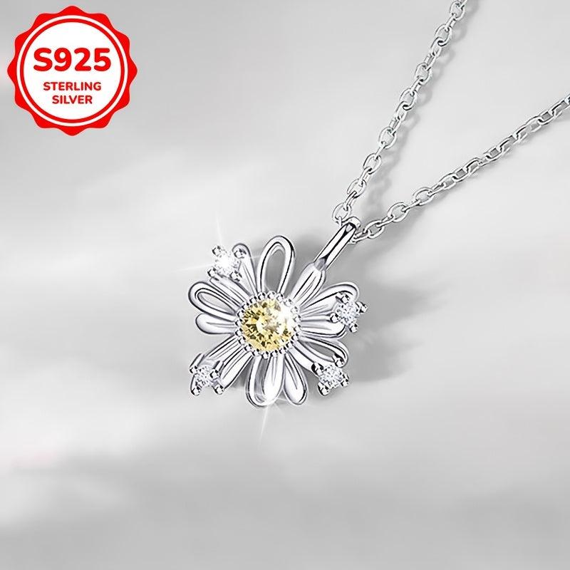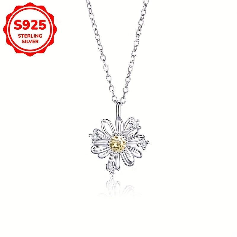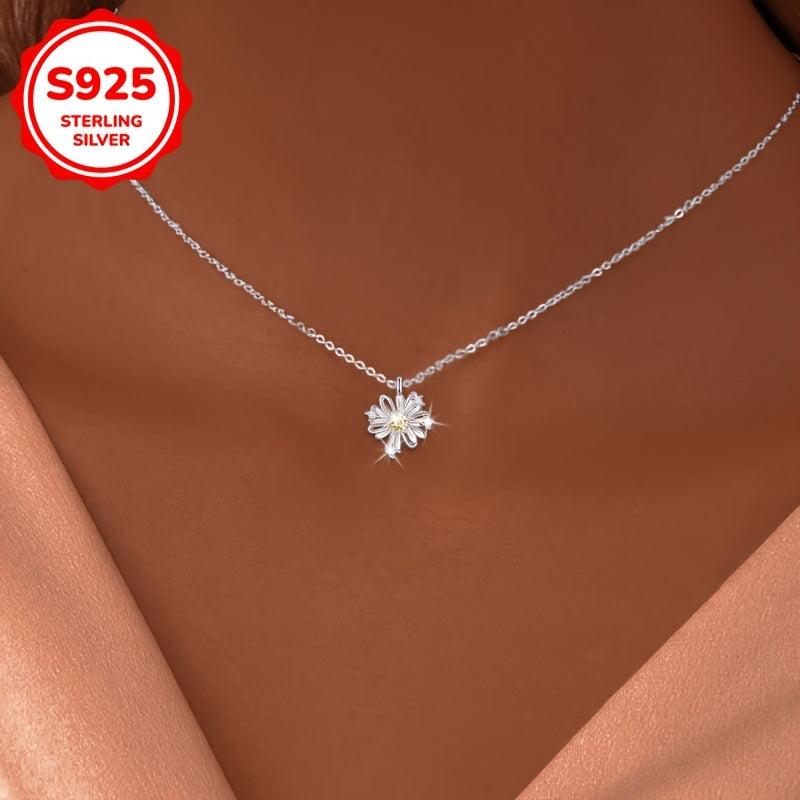 This delicate pendant necklace features a small daisy mosaic design with synthetic zirconia stones set in 925 sterling silver. Perfect for daily wear or holiday accessorizing.