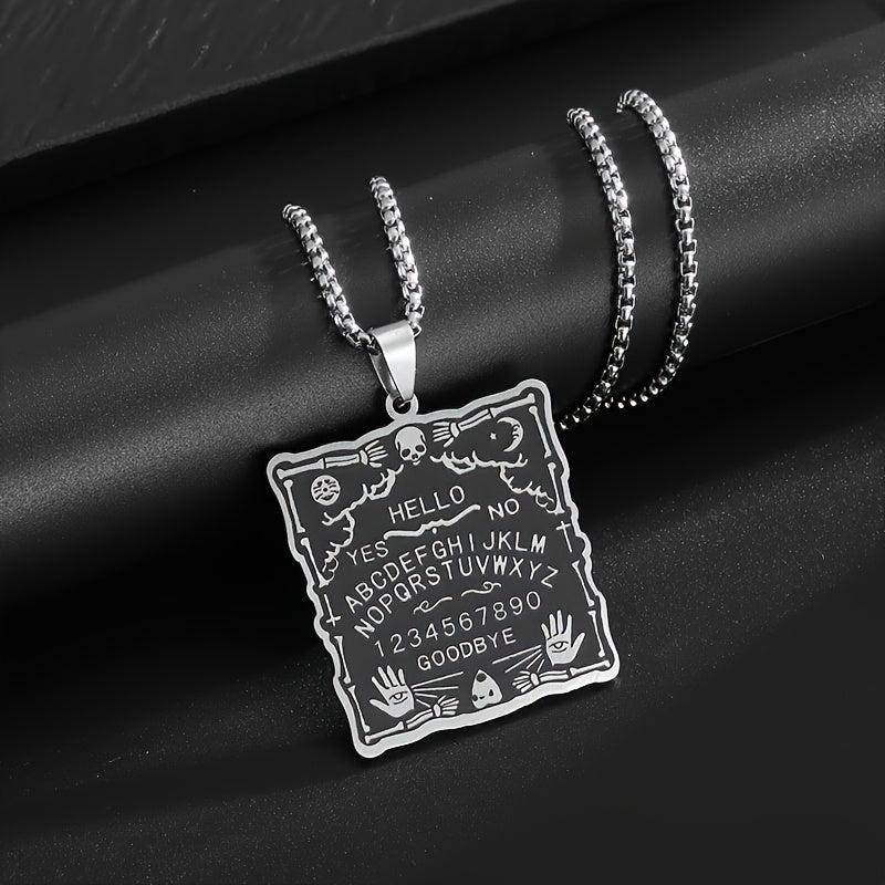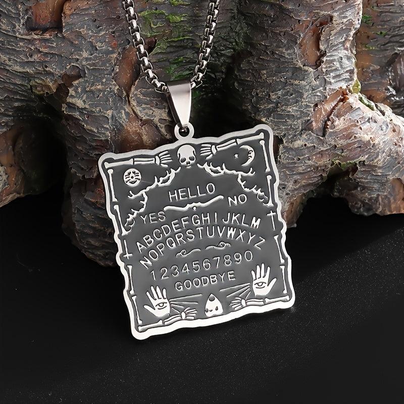 Unleash your inner mystique with this dark witchcraft-inspired stainless steel pendant necklace featuring a unique palm character square tag design.