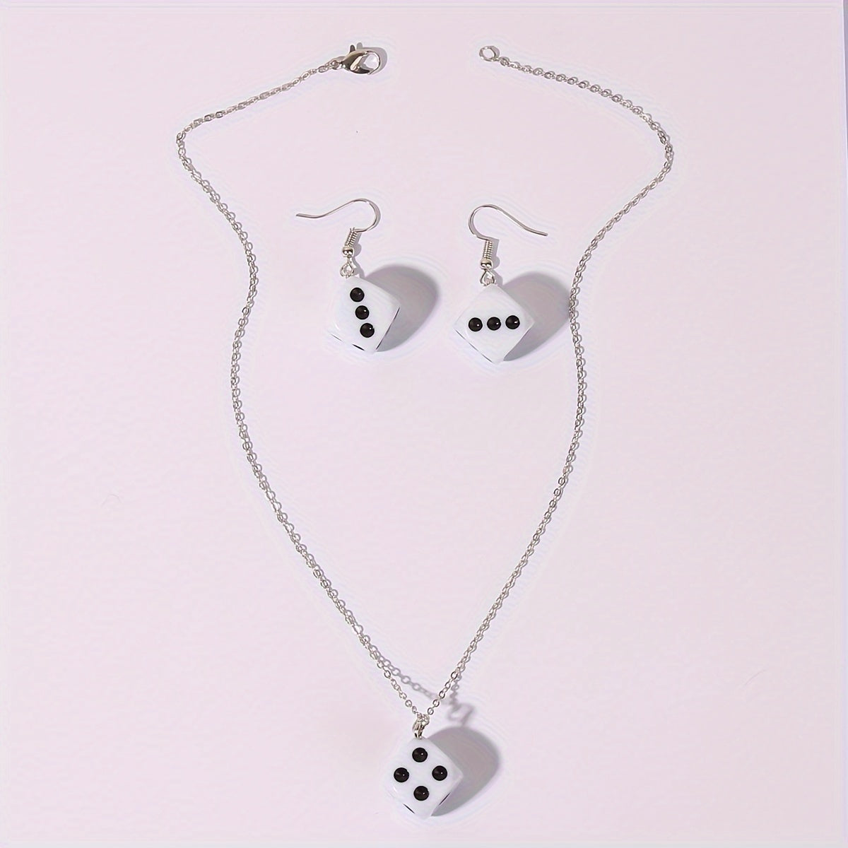 Elegant dice shaped earrings and necklace set perfect for vacation wear. Add a touch of fun and style to your outfit with this unique jewelry set.