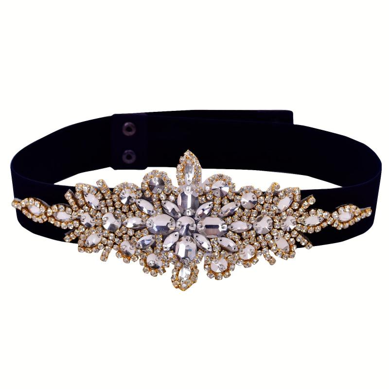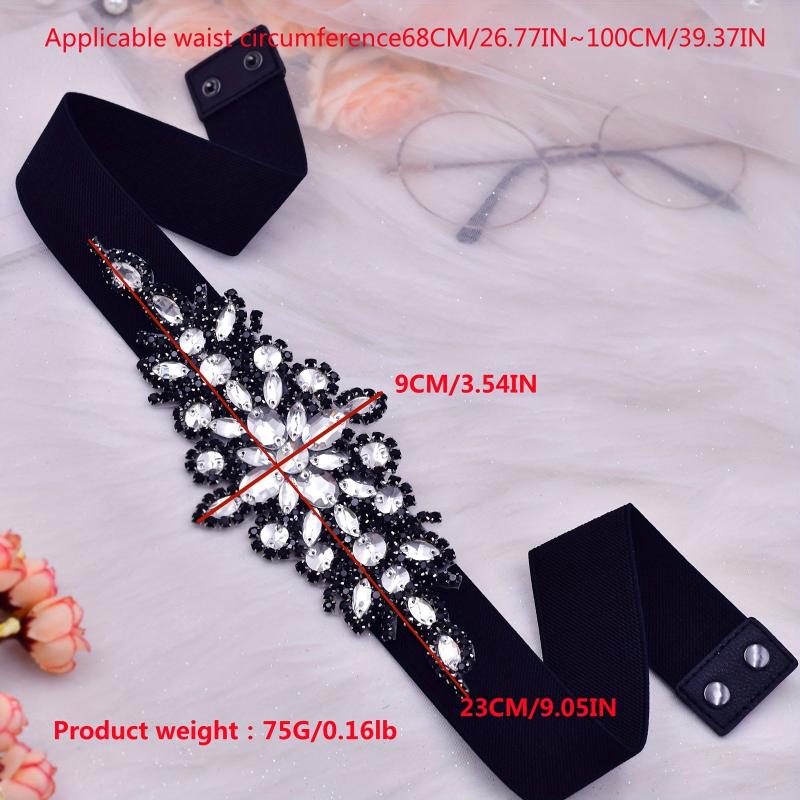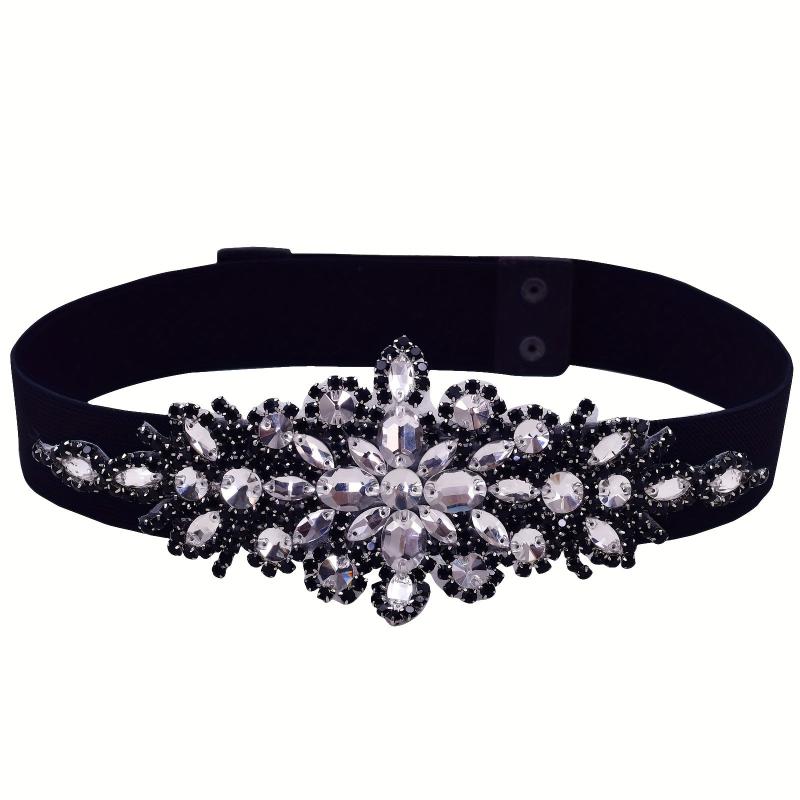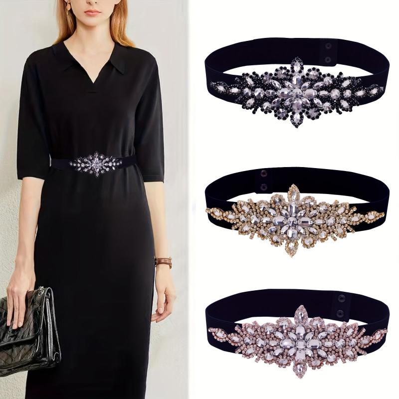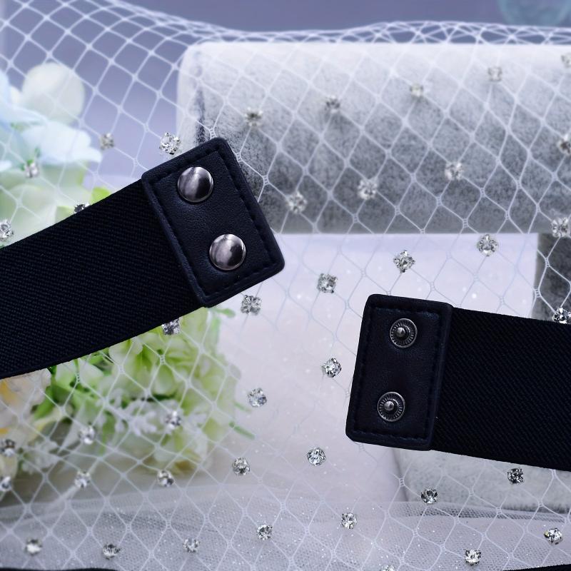 Effortlessly chic, this versatile dress coat features a widened elastic band for a comfortable fit. Accessorized with a glamorous golden acrylic waist belt and delicate rose accents.