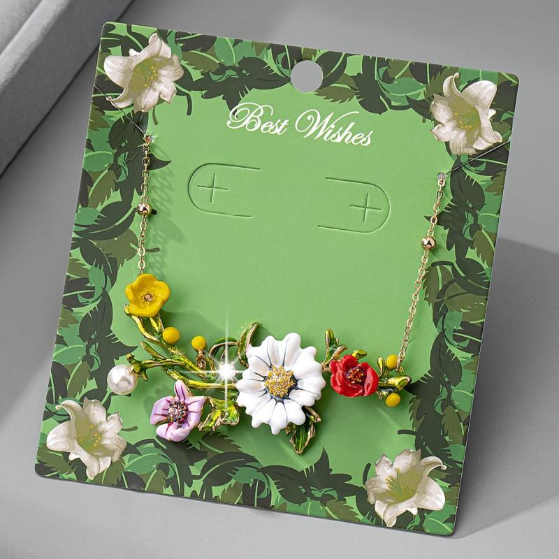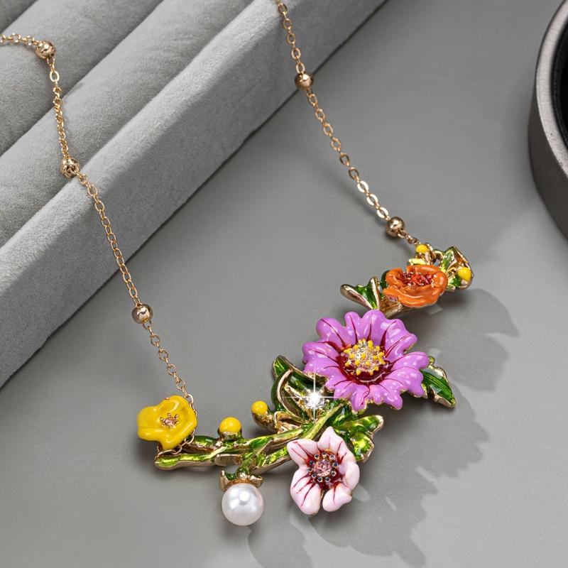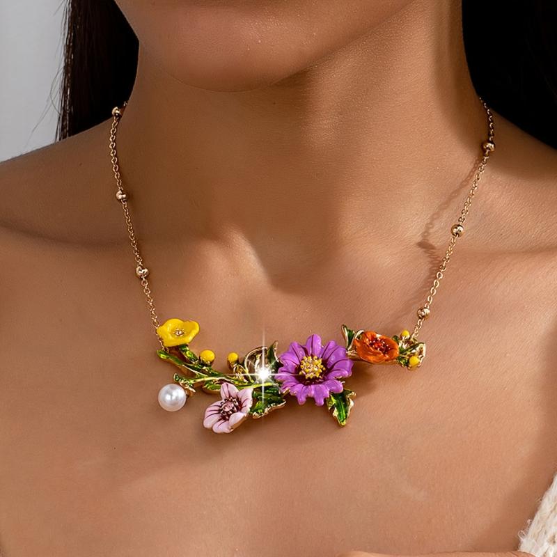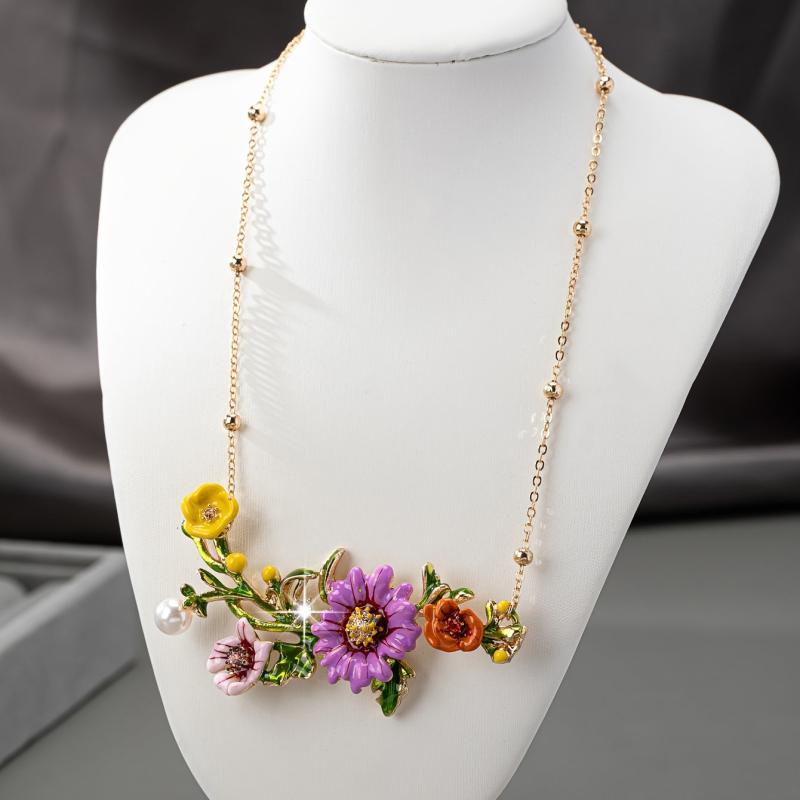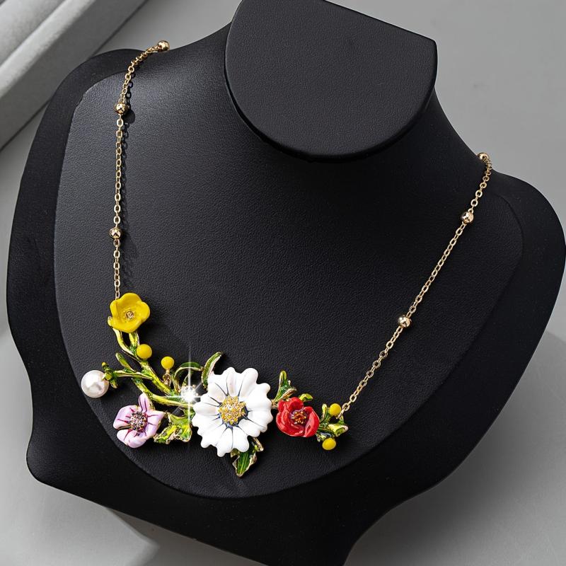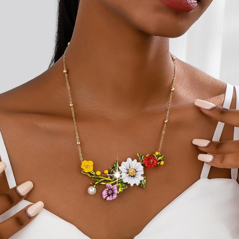 This sweet necklace features enamel flowers, ideal for holidays, birthdays, parties, and more.