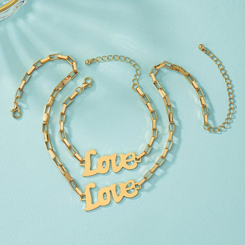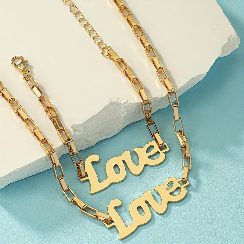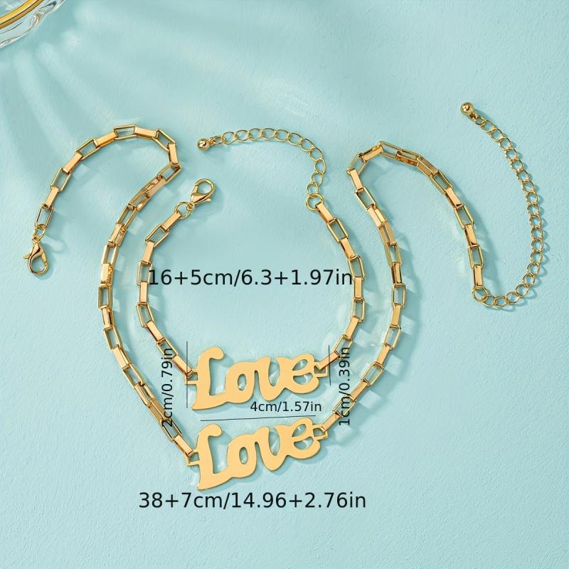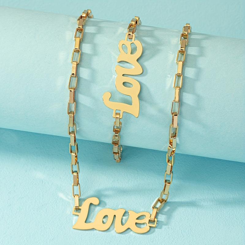 • Hollow English love metal pendant bracelet and necklace set
