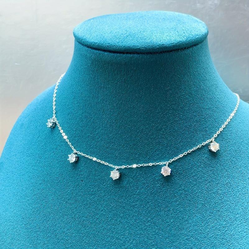 Stunning 925 Sterling Silver necklace with 2.5 Carat Moissanite. Perfect for daily wear or special occasions. Makes a great gift!