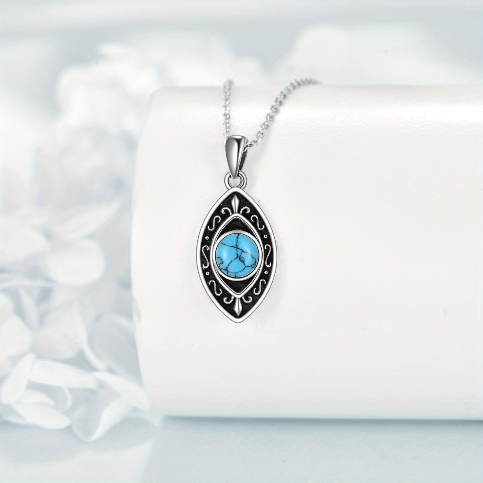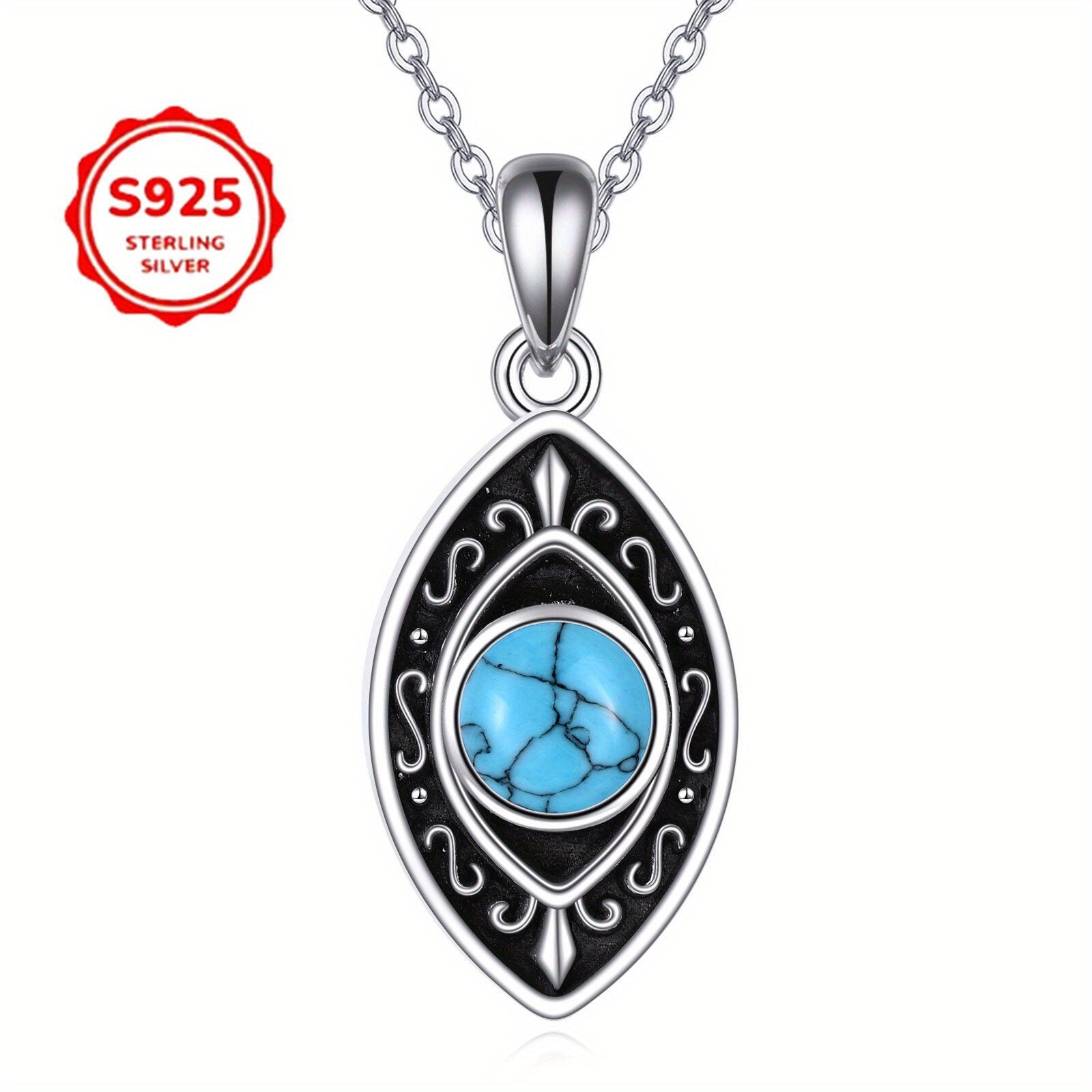 Evil Eye 925 Silver Necklace Vintage Turquoise Pendant Luck Jewelry
