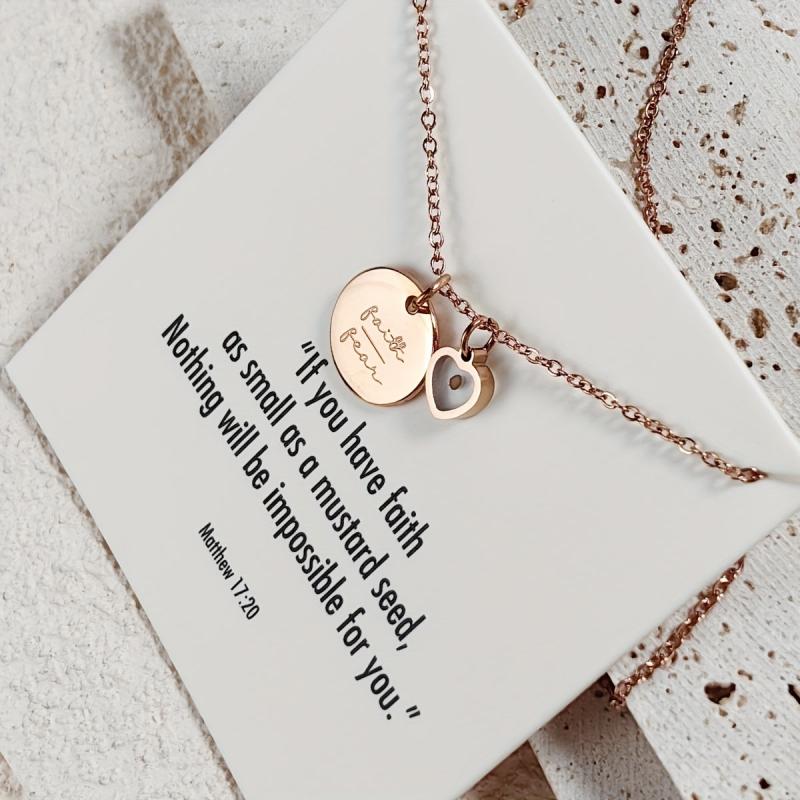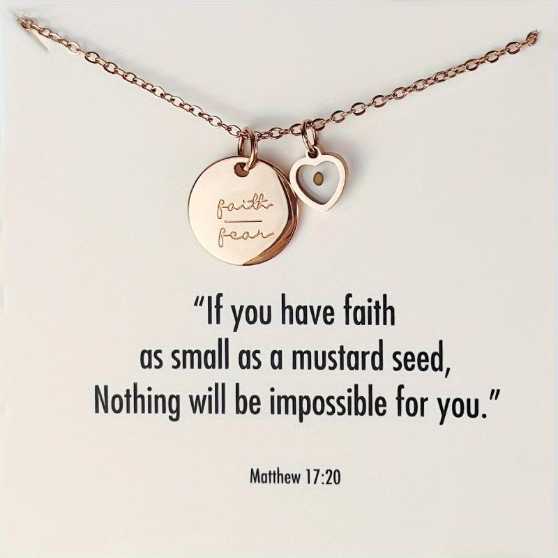 Beautiful necklace inspired by Matthew 17:20, reminding you to choose faith over fear. Elegant design with a heart charm. Perfect accessory for everyday wear or special occasions.