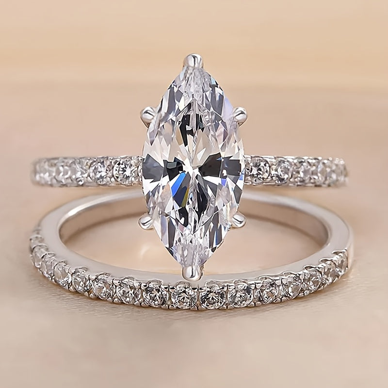 Elevate your special day with this stunning 2-piece ring set, perfect for brides. Crafted with zirconium and intricate detailing, these rings exude elegance and sophistication.