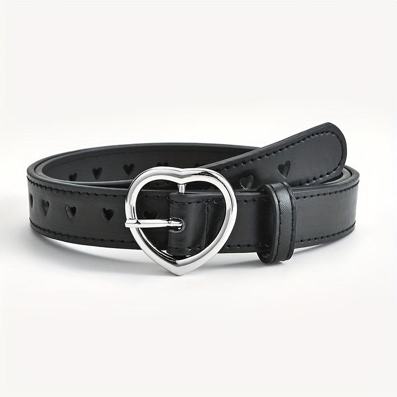 Add a touch of style to your dress or jeans with this chic faux leather belt. Featuring a love buckle design and heart-shaped hole hollow decoration, this belt is perfect for casual wear.