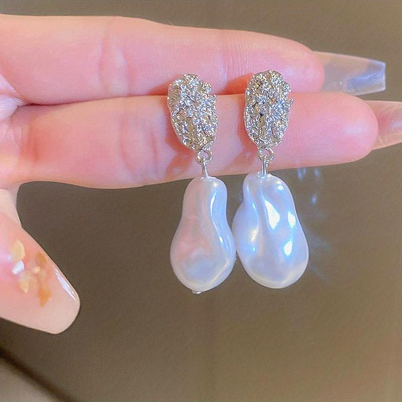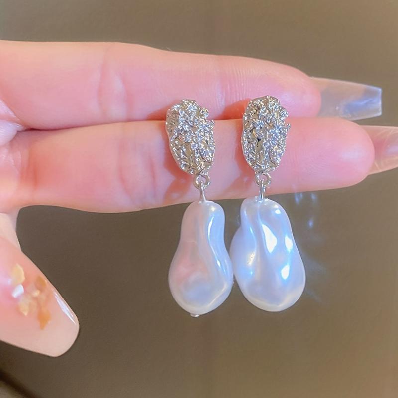 Add elegance to your look with these alloy earrings featuring irregular faux pearls. Suitable for daily wear and parties.